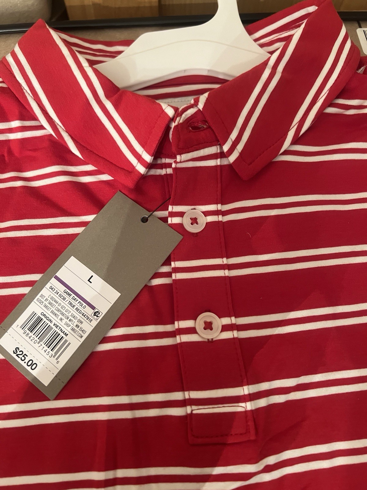 как выглядит NWT Goodfellow Polo Shirt Red White Stripe Short Sleeve Golf Men s XL фото
