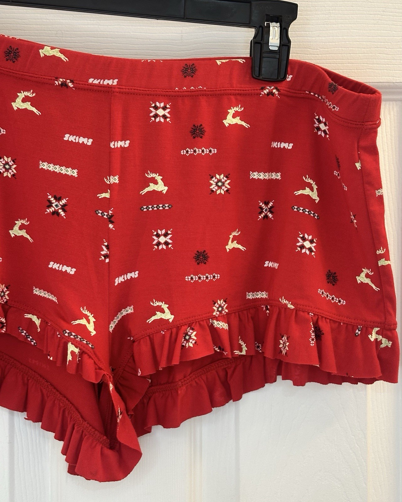 Skims Soft Lounge Sleep Shorts In Cranberry Vintage Deer Print Size Large