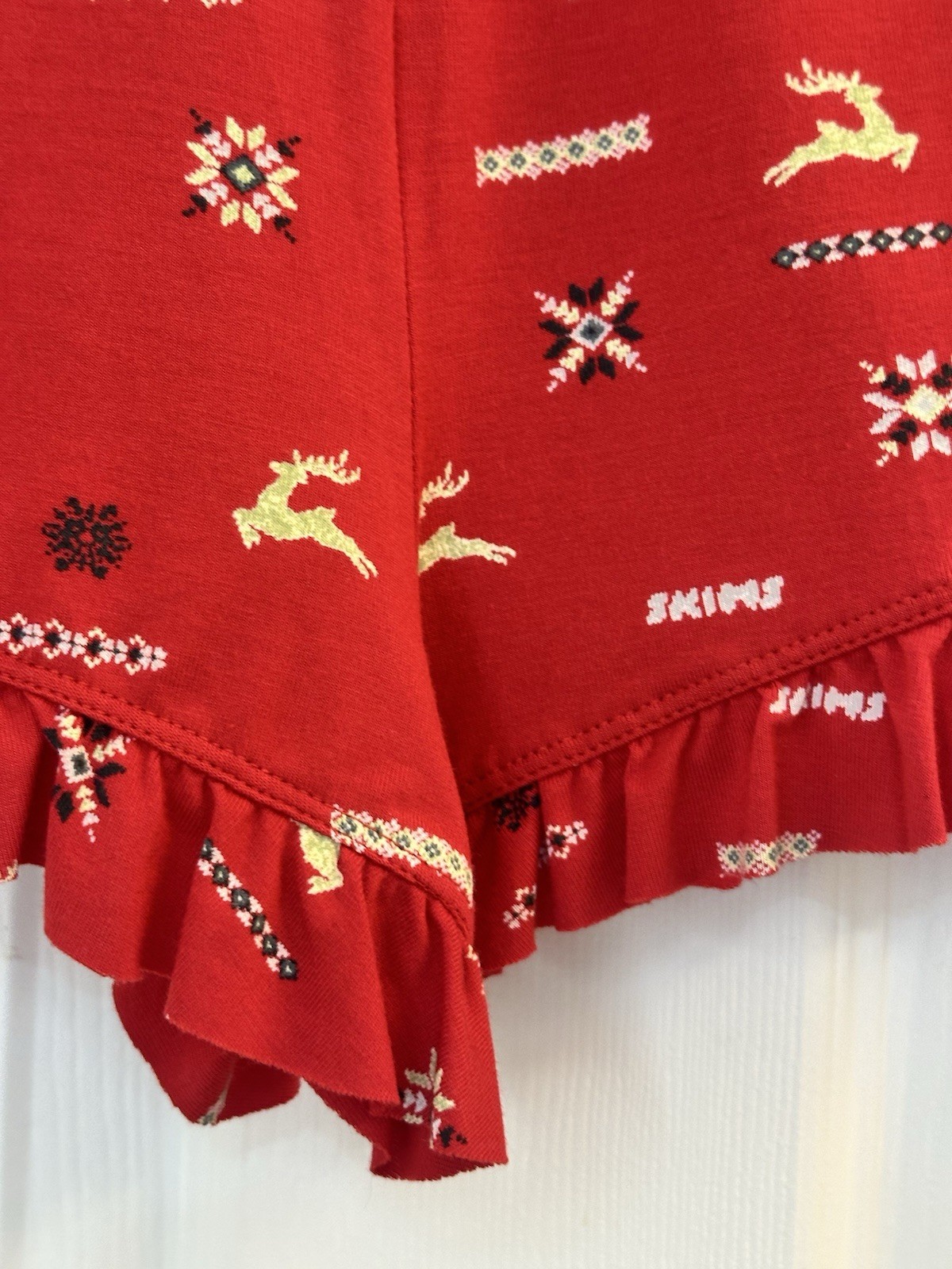 как выглядит Skims Soft Lounge Sleep Shorts In Cranberry Vintage Deer Print Size Large фото