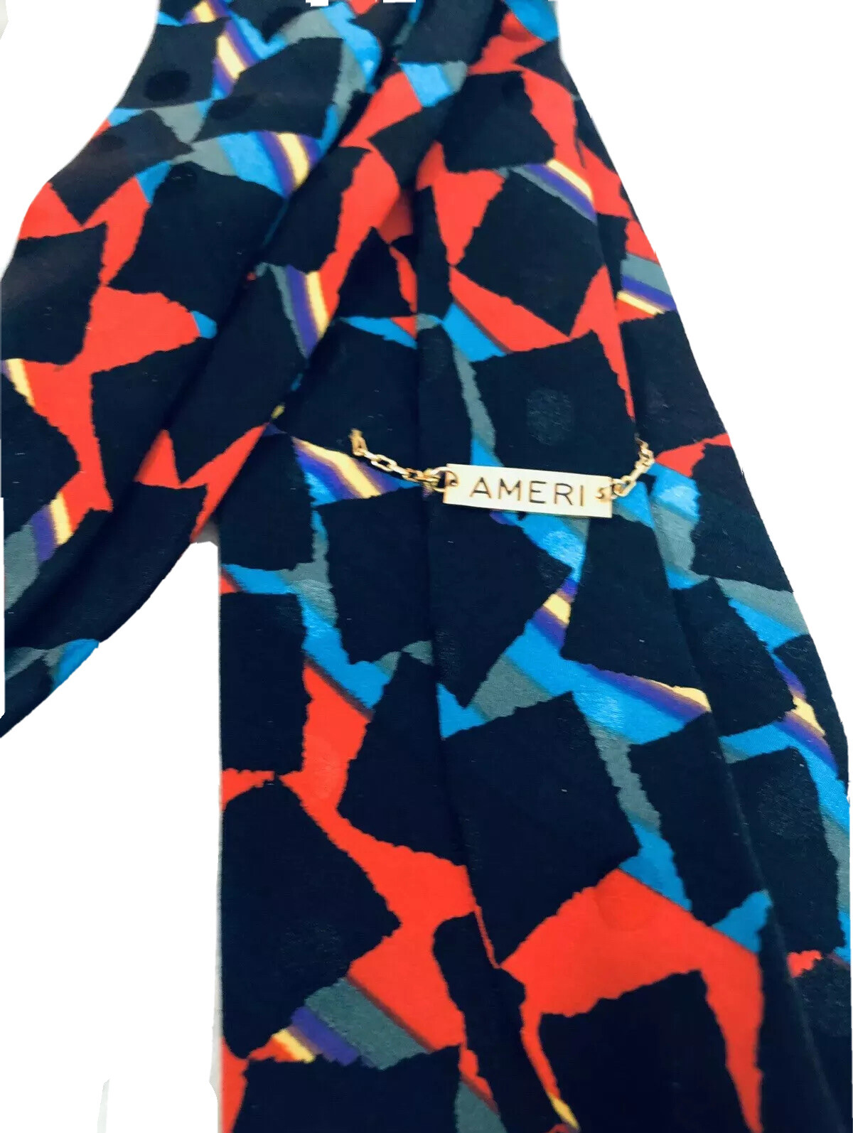 AMERI Men's 100 Silk Necktie Handmade In Italy Luxury Rare EUC Multi Colors