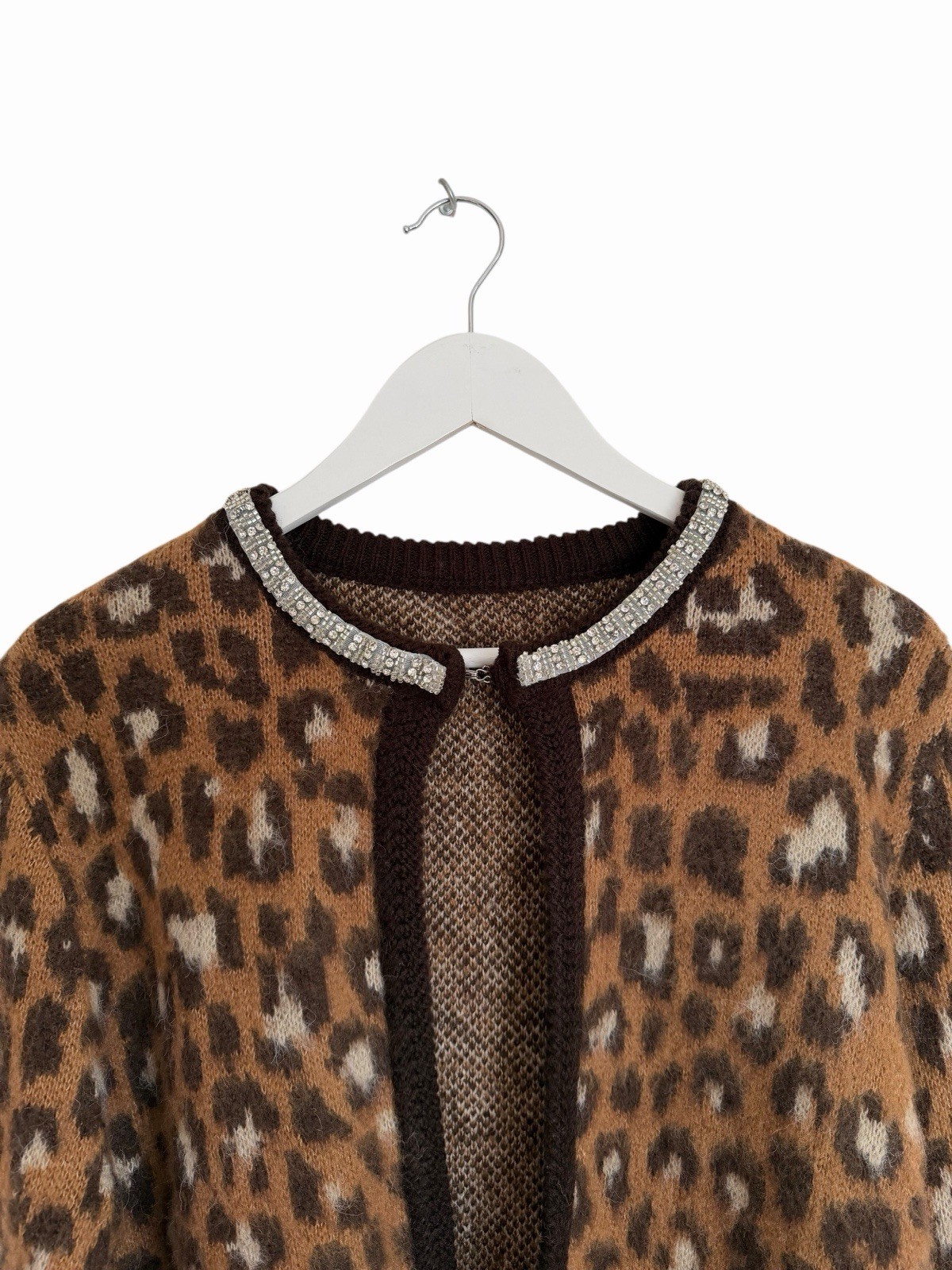 Leopard Cardigan Next Jewel Neck Embellished Collar RRP 38 Size L 14 16