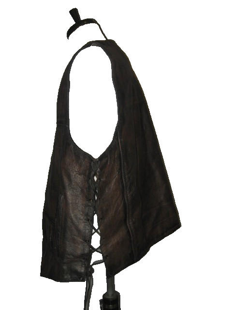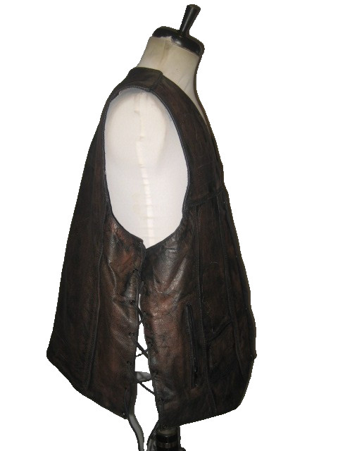 как выглядит Mens Demon Wear Brown Leather Conceal Carry Motorcycle Biker Vest - 3XL фото