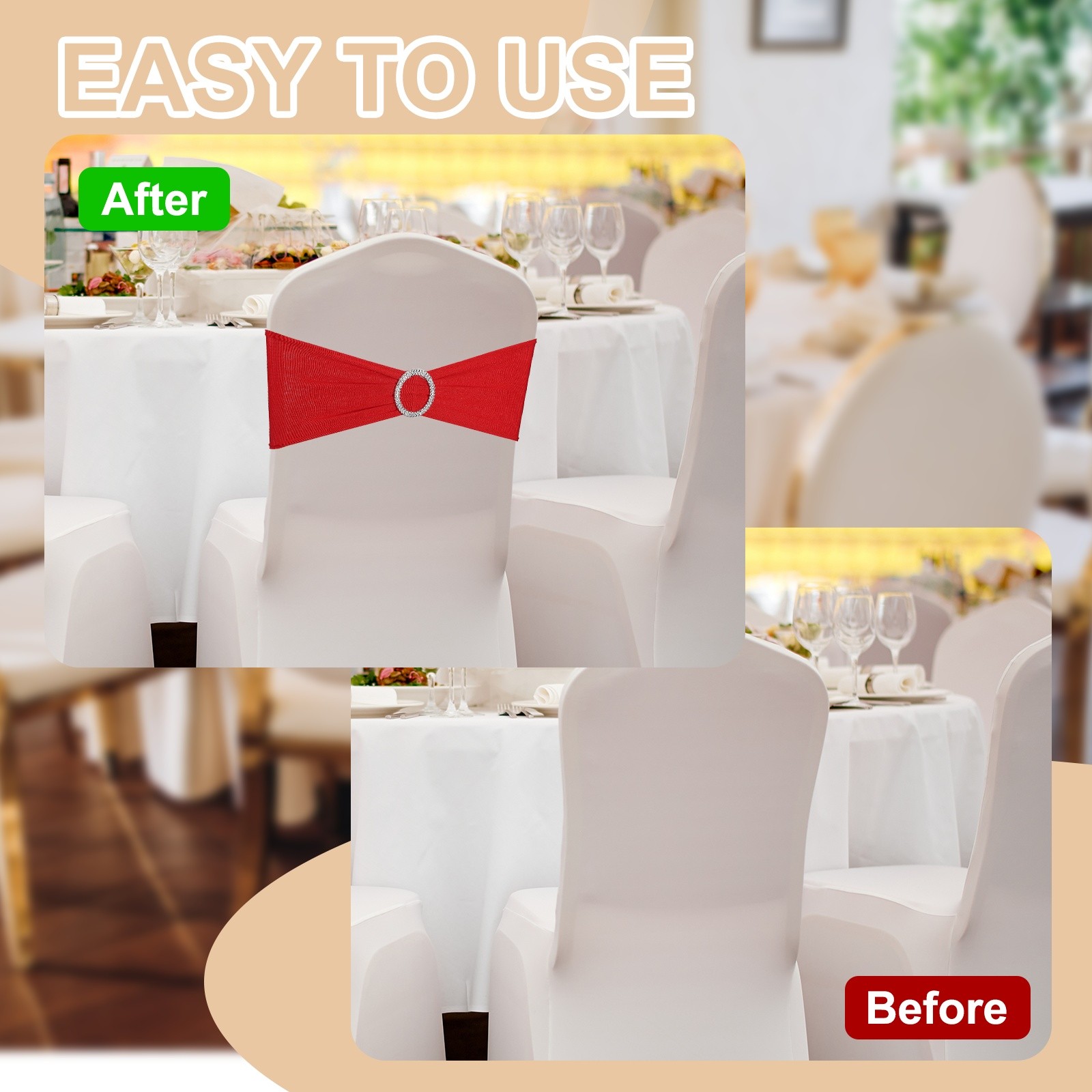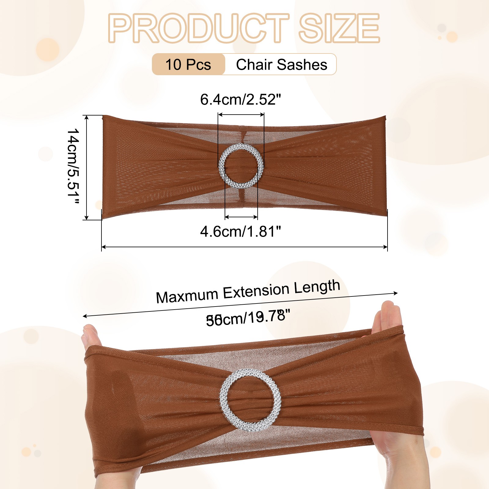 10 Pack Chair Sashes, Stretch Chair Cover Band Bows Cover Band, Light Brown