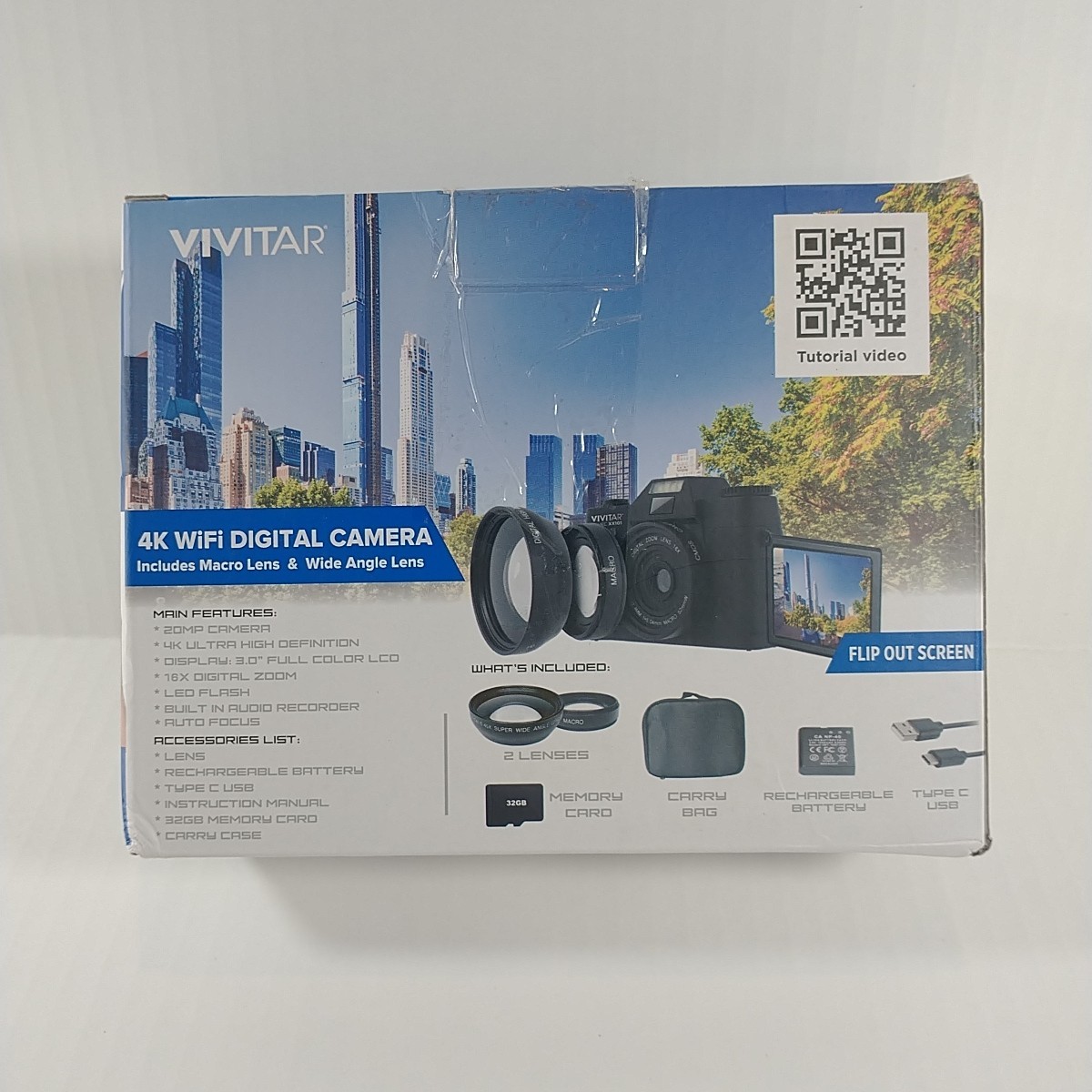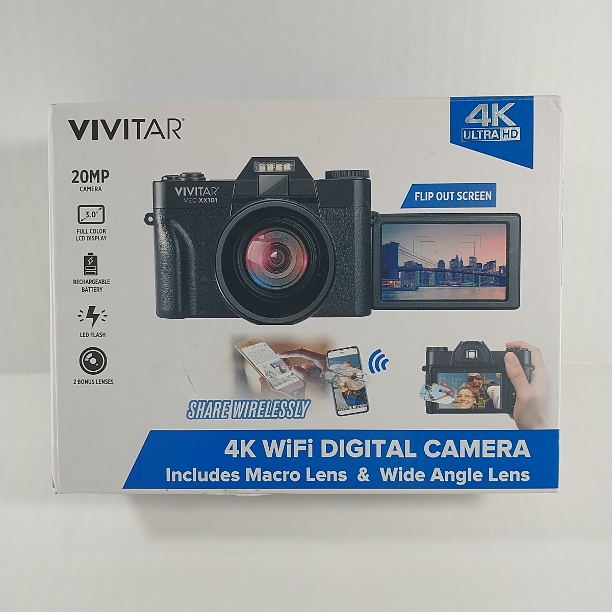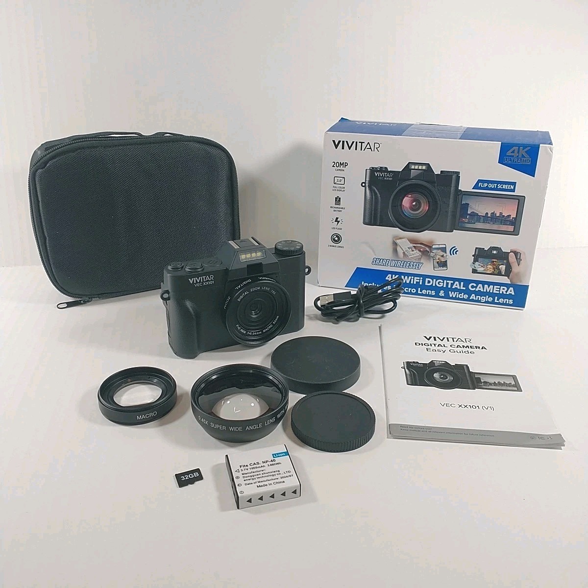 Vivitar 4K WiFi Digital Camera SD Card Battery Manual Macro Wide Lens In Box