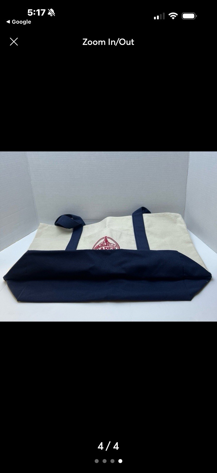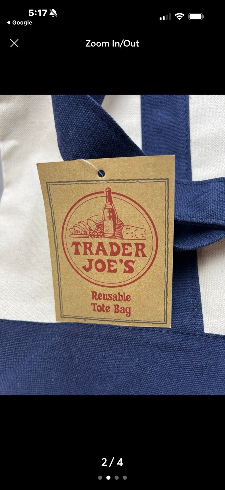 как выглядит Trader Joes Reusable Canvas Tote Bag Beige Navy Blue фото