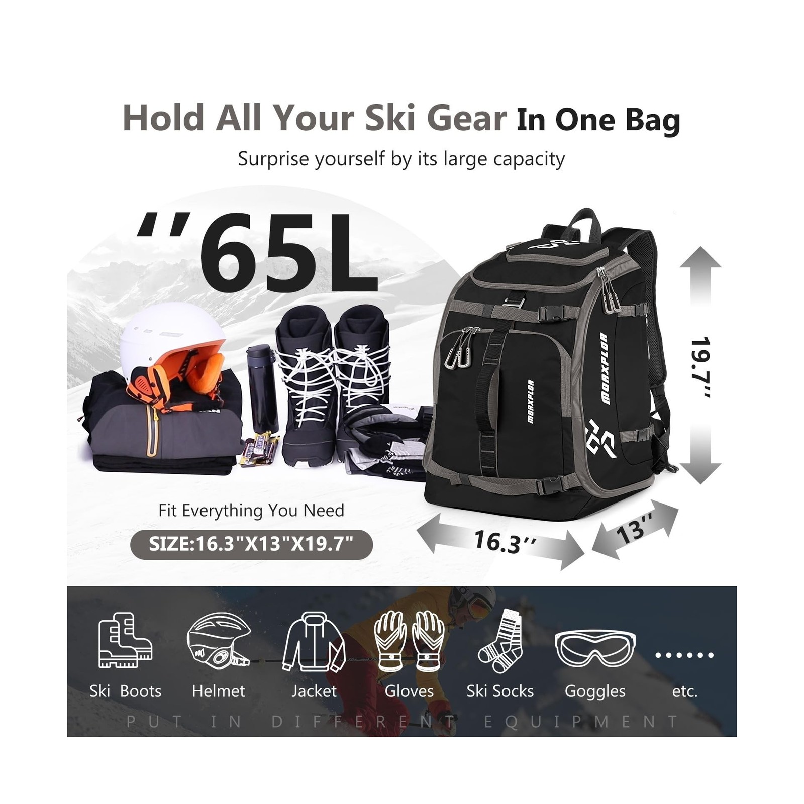 Ski Boot Bag - 65L Padded, Waterproof Ski Travel Backpack for Gear Accessor...