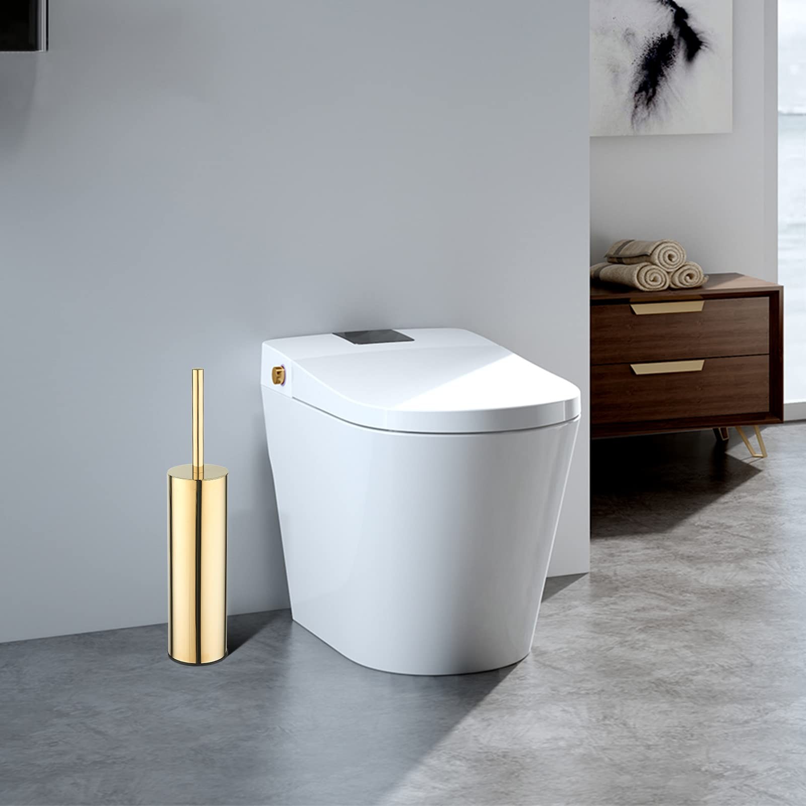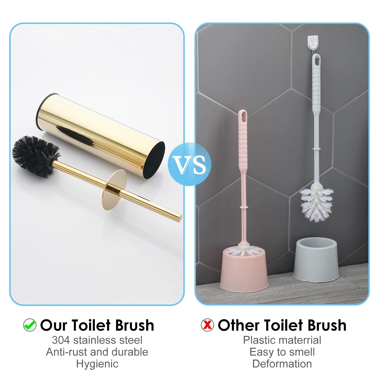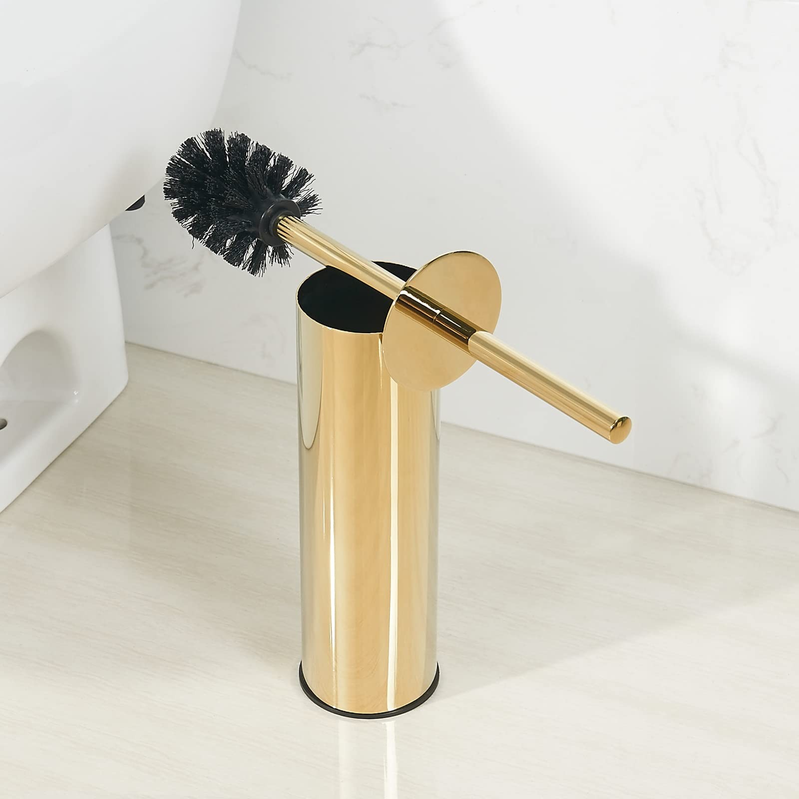 Toilet Brush and Holder Set Gold Stainless Steel, 304 Gold-round