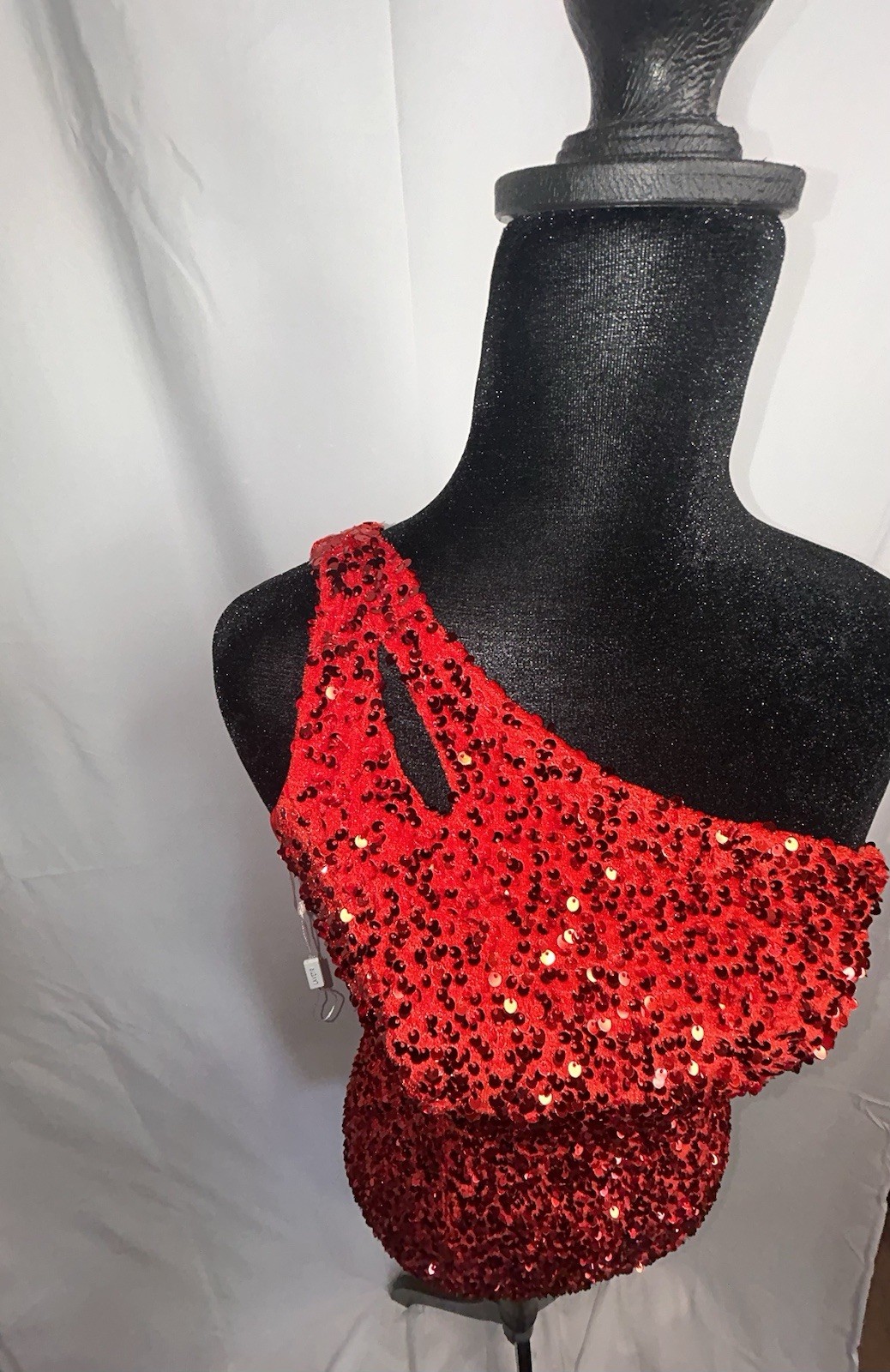 Red Sequin One-Shoulder Prom Dress XS/S Open Back