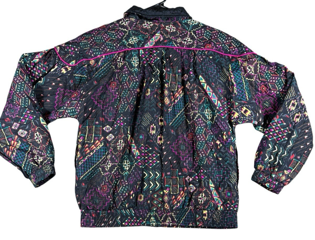 как выглядит Lavon by Cheerful Corp Vntg Y2K 100 Nylon Track Jacket Geometric Womens Size S фото