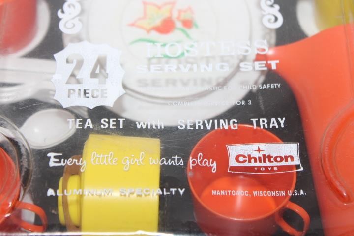 Vintage Retro Childs Pretend Play Chilton Toys Plastic Hostess Serving Tea Set