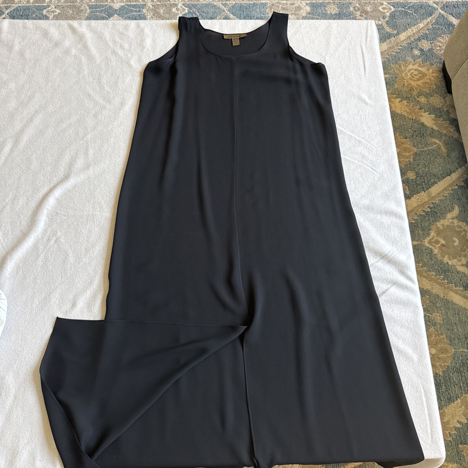 как выглядит Harari Women Silk Dress 2pc Set Black Maxi Button Top Oriental Characters Sz M фото