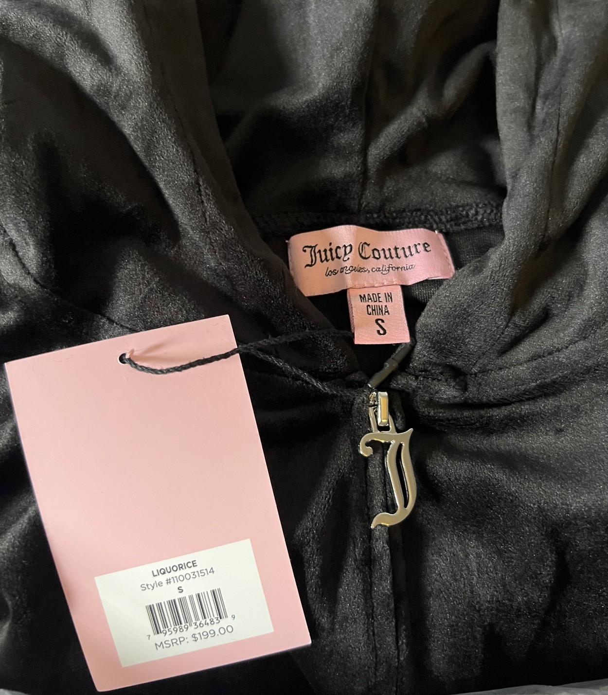 как выглядит NEW 199 JUICY COUTURE OG Black Bling Velour Tracksuit Hoodie Pants Set S фото