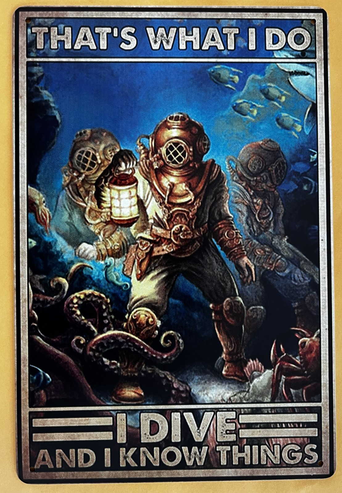 как выглядит I Dive Know Things Tin Sign SCUBA Snorkle SEAL Surf W41386 фото