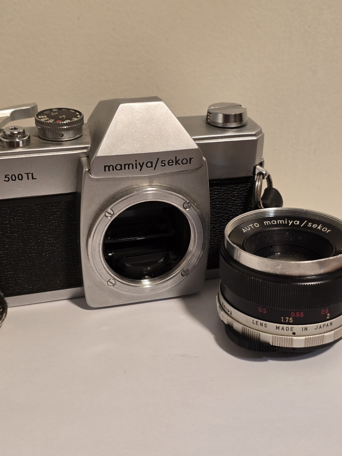 Mamiya Sekor 500TL 35mm Film Camera. 50mm F/2 Lens. Works. Not Film Tested.