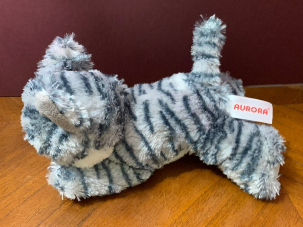 как выглядит 2020 AURORA WORLD FLOPIES CAT GRAY WITH STRIPES PLUSH/STUFFED ANIMAL фото