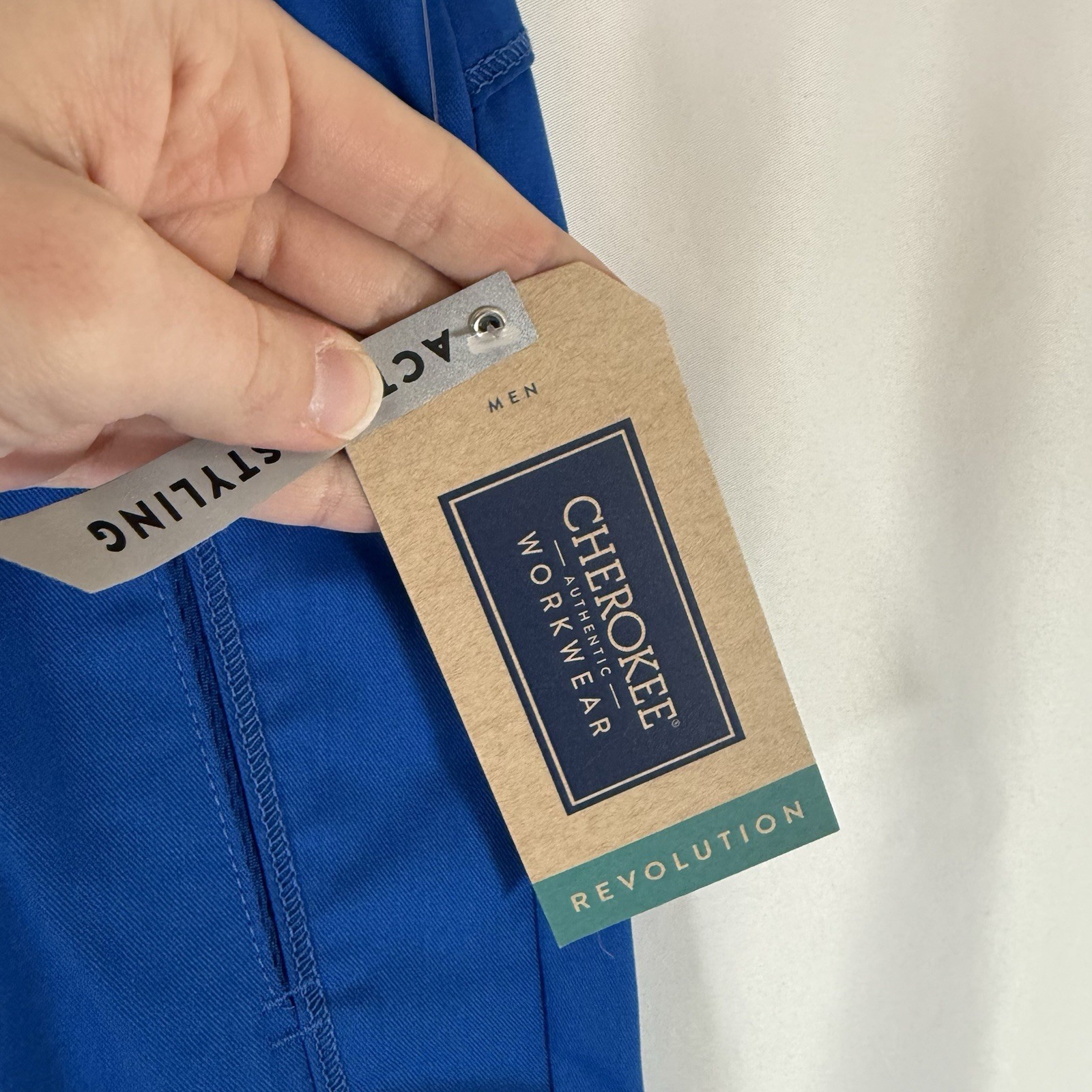 как выглядит New Cherokee Revolution Scrub Pants Mens Large Blue Zip Pocket Drawstring фото