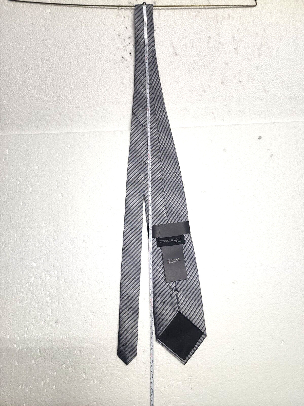как выглядит Kenneth Cole Necktie Men Gray Striped New York Formal 100 Silk Hand Made NWT фото
