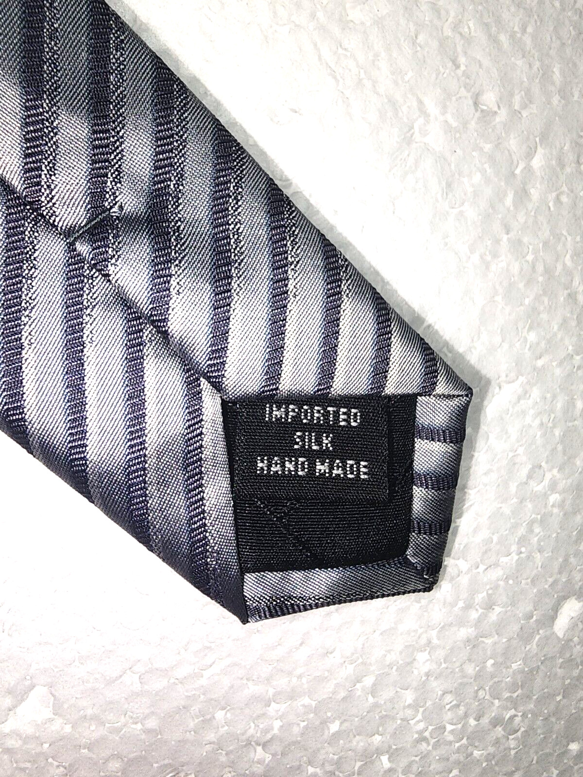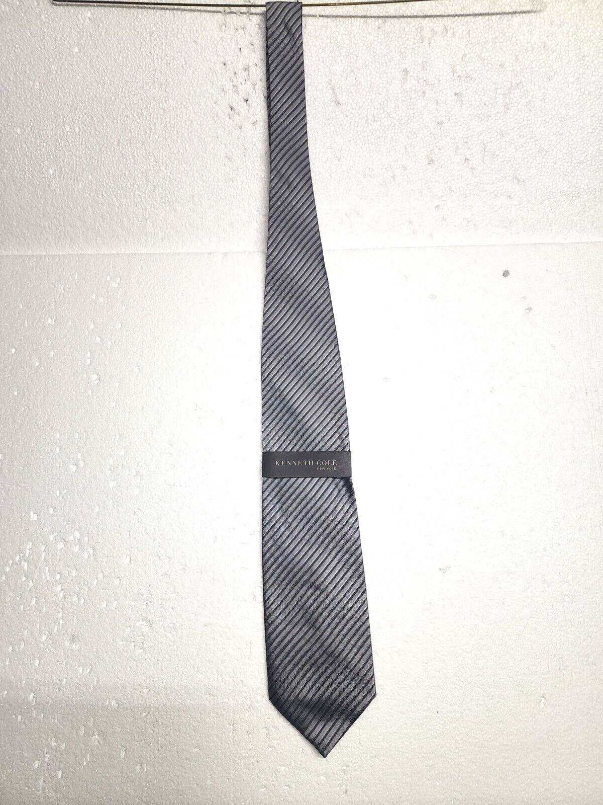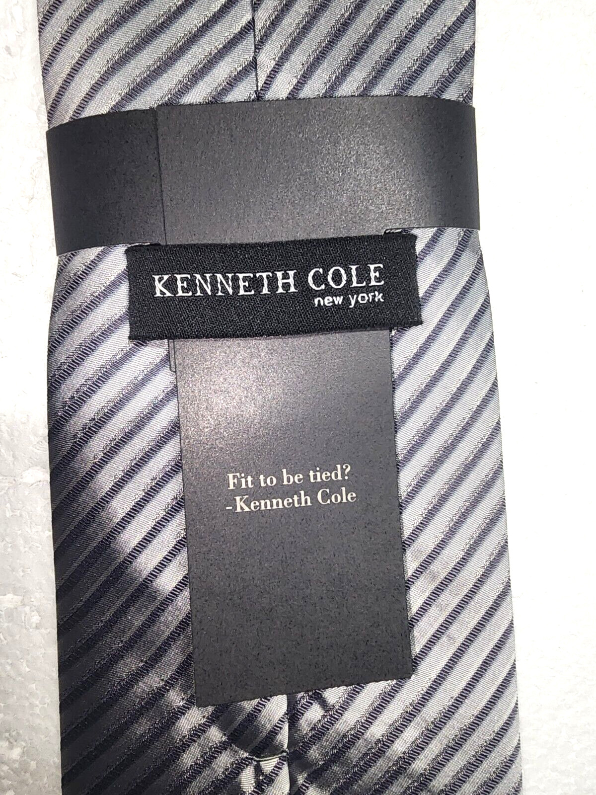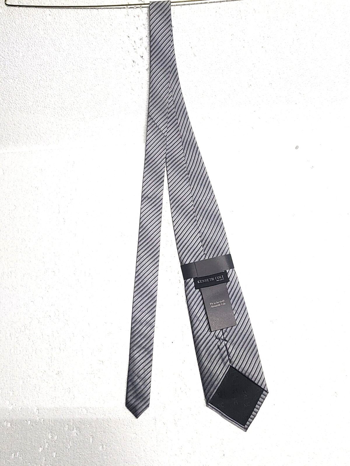 Kenneth Cole Necktie Men Gray Striped New York Formal 100 Silk Hand Made NWT