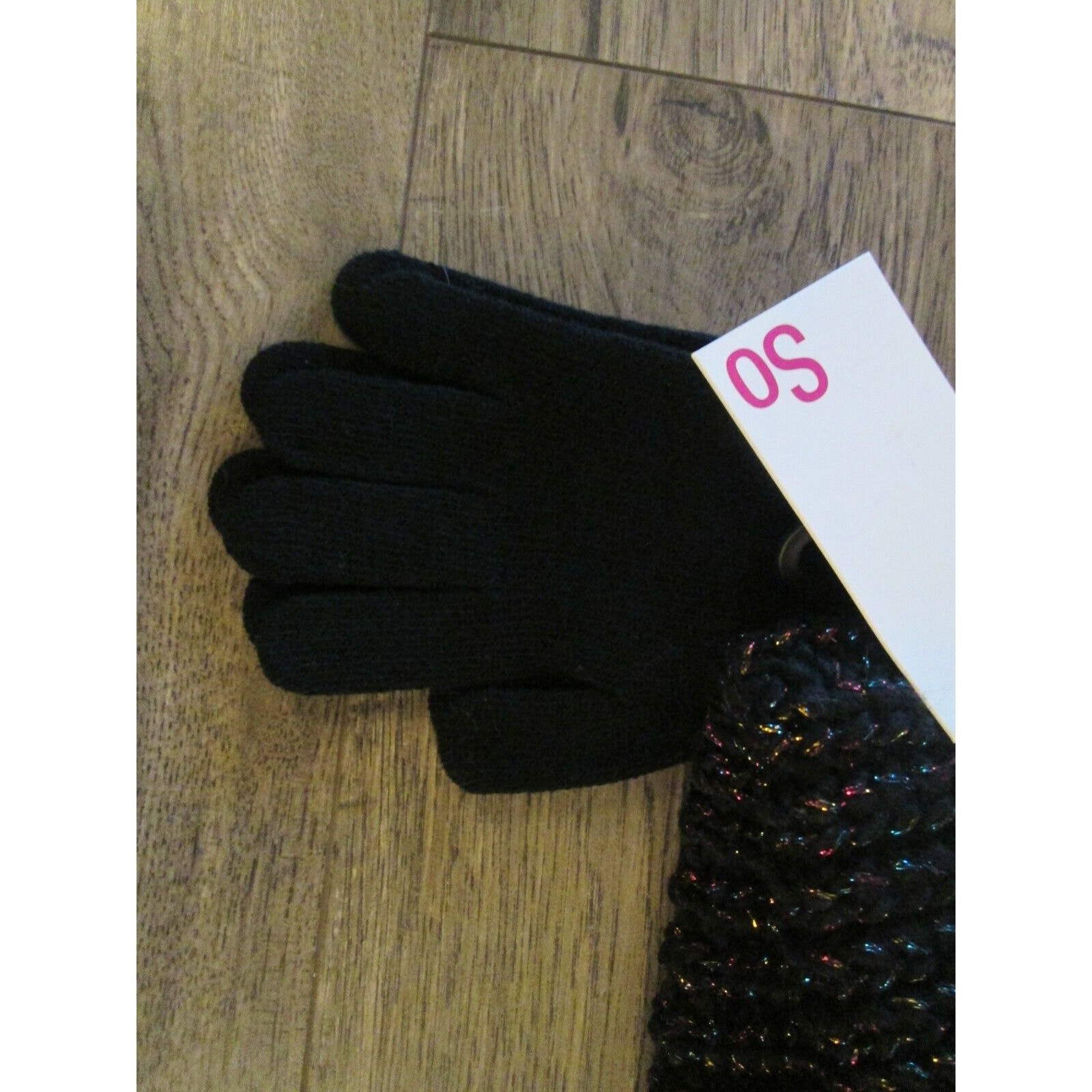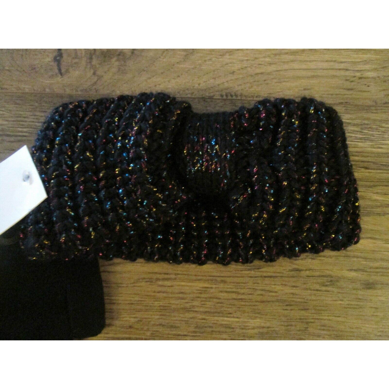 как выглядит Girls Head Wrap Gloves Set Black Knotted Metallic Threading Kids Winter Gear фото