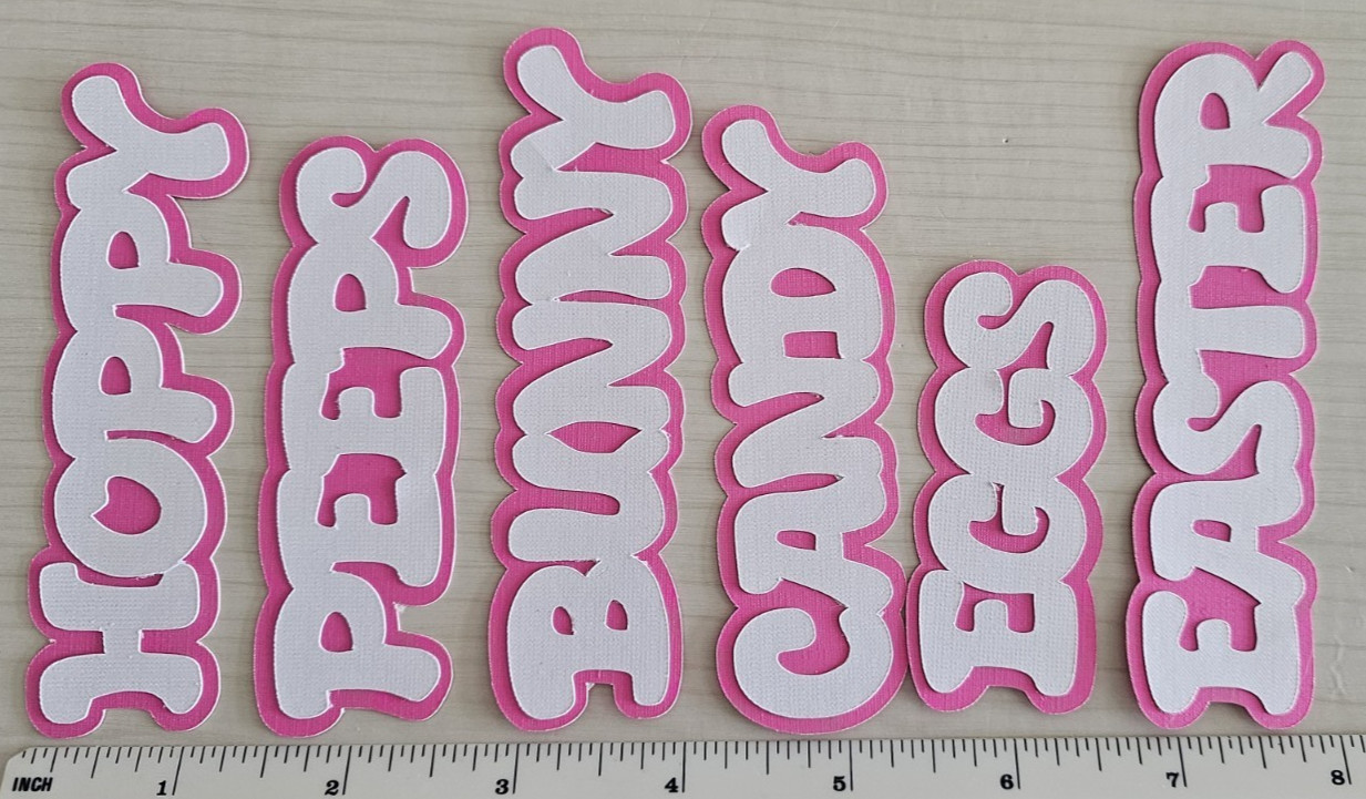 Easter Paper Piecing Titles Set of 6 Scrapbook Pink White Hoppy Peeps Eggs Bunny