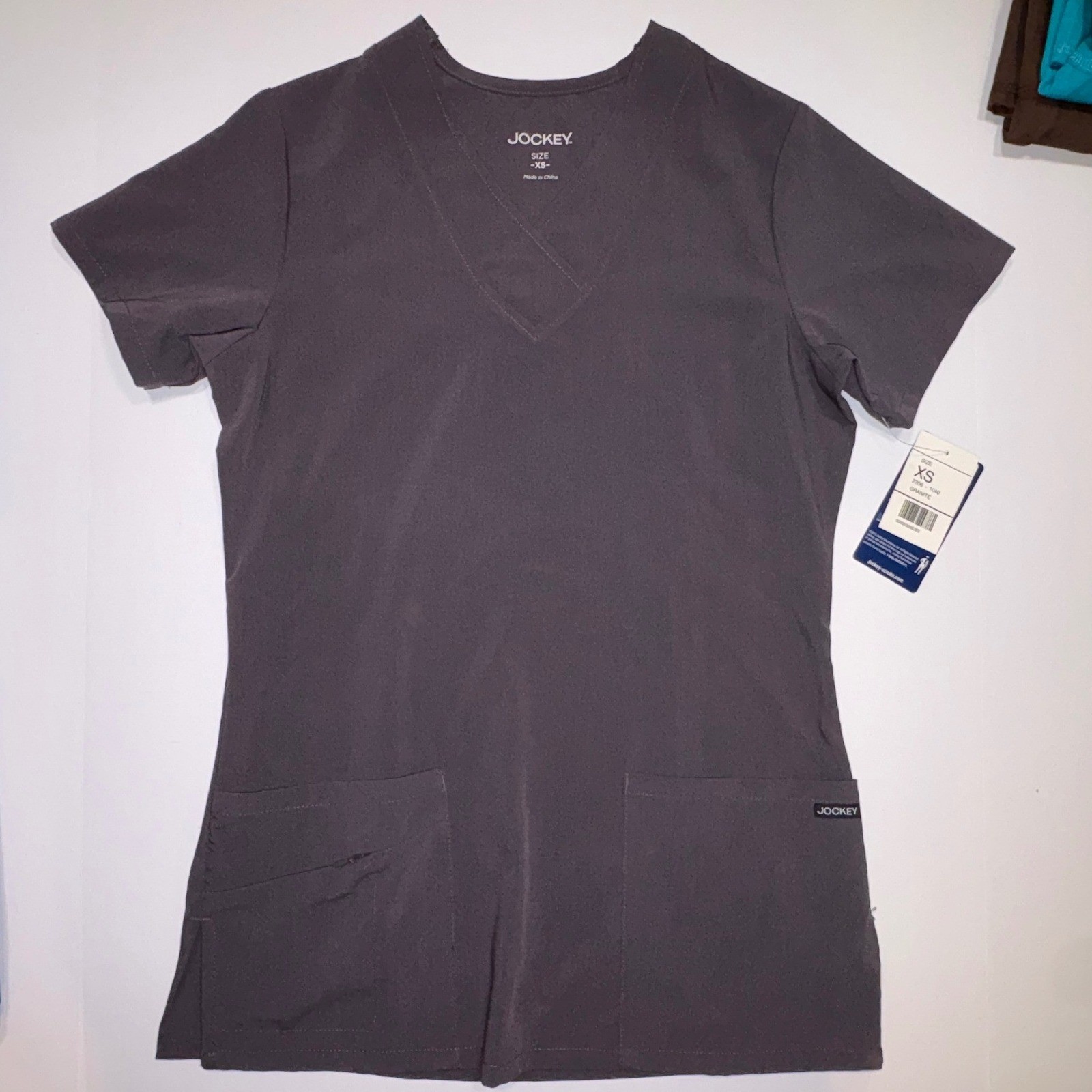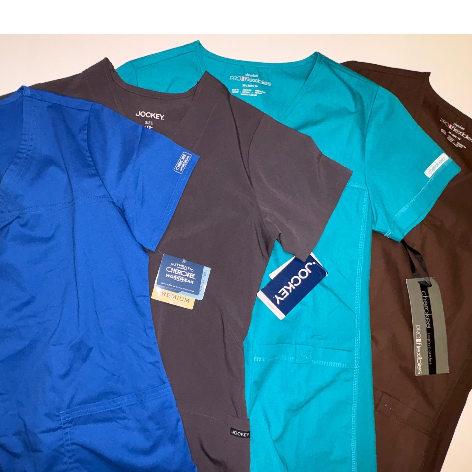 как выглядит Cherokee Jockey Fit V Neck Scrub Top XS Teal Brown Grey Blue фото