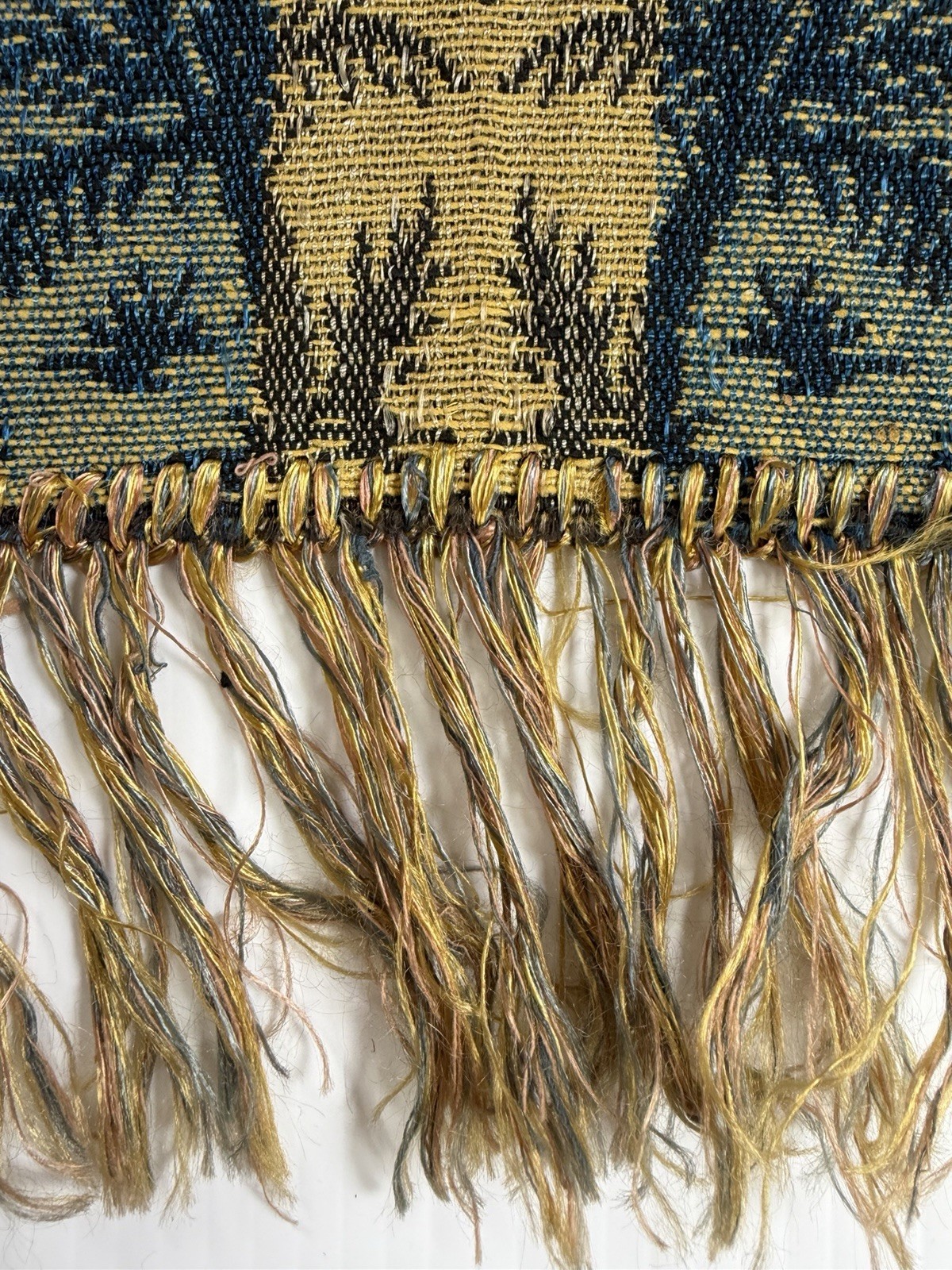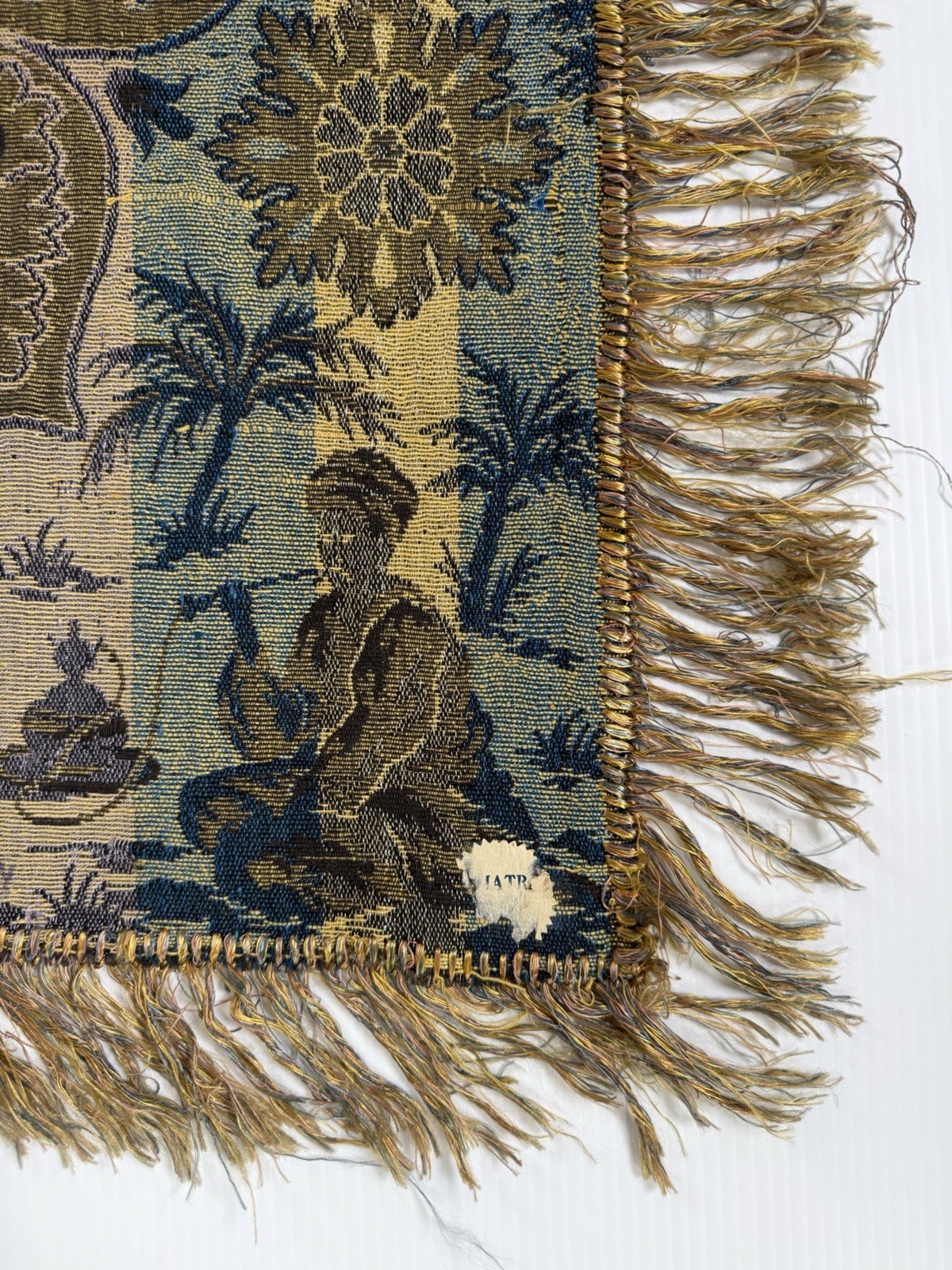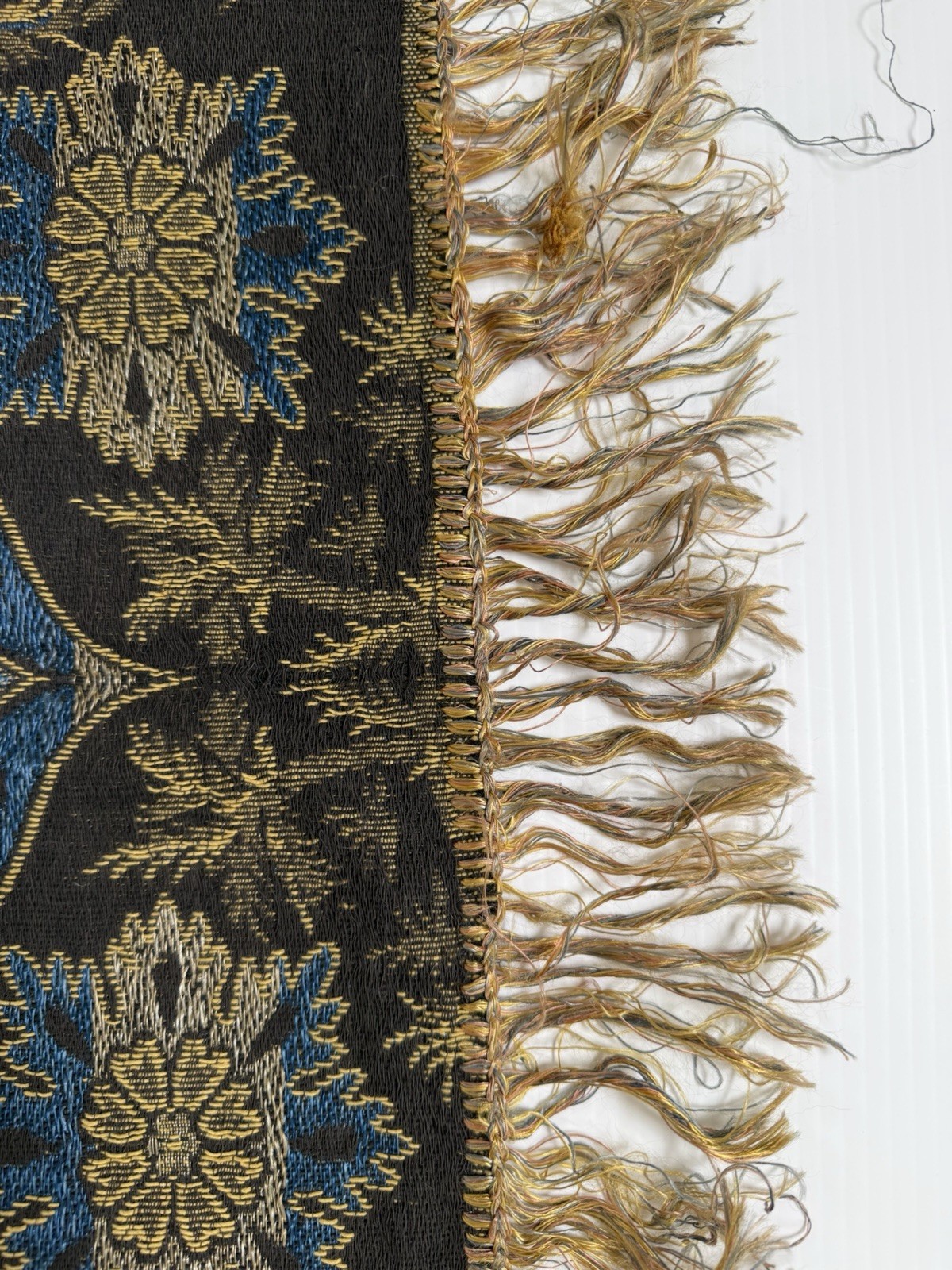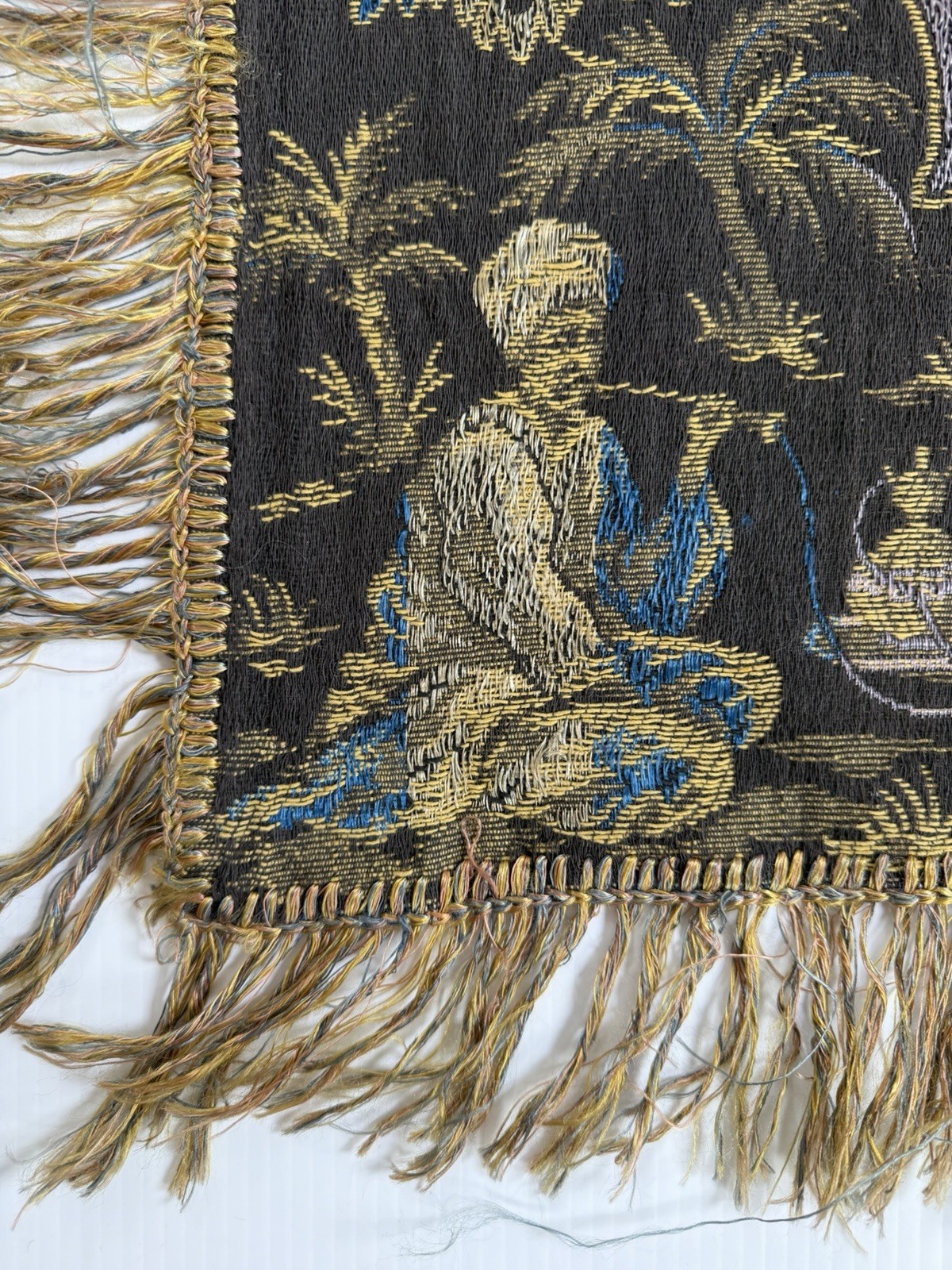 Vintage Eastern Style Woven Fringe Shawl Piano Scarf, Man Smoking Pipe, Italy