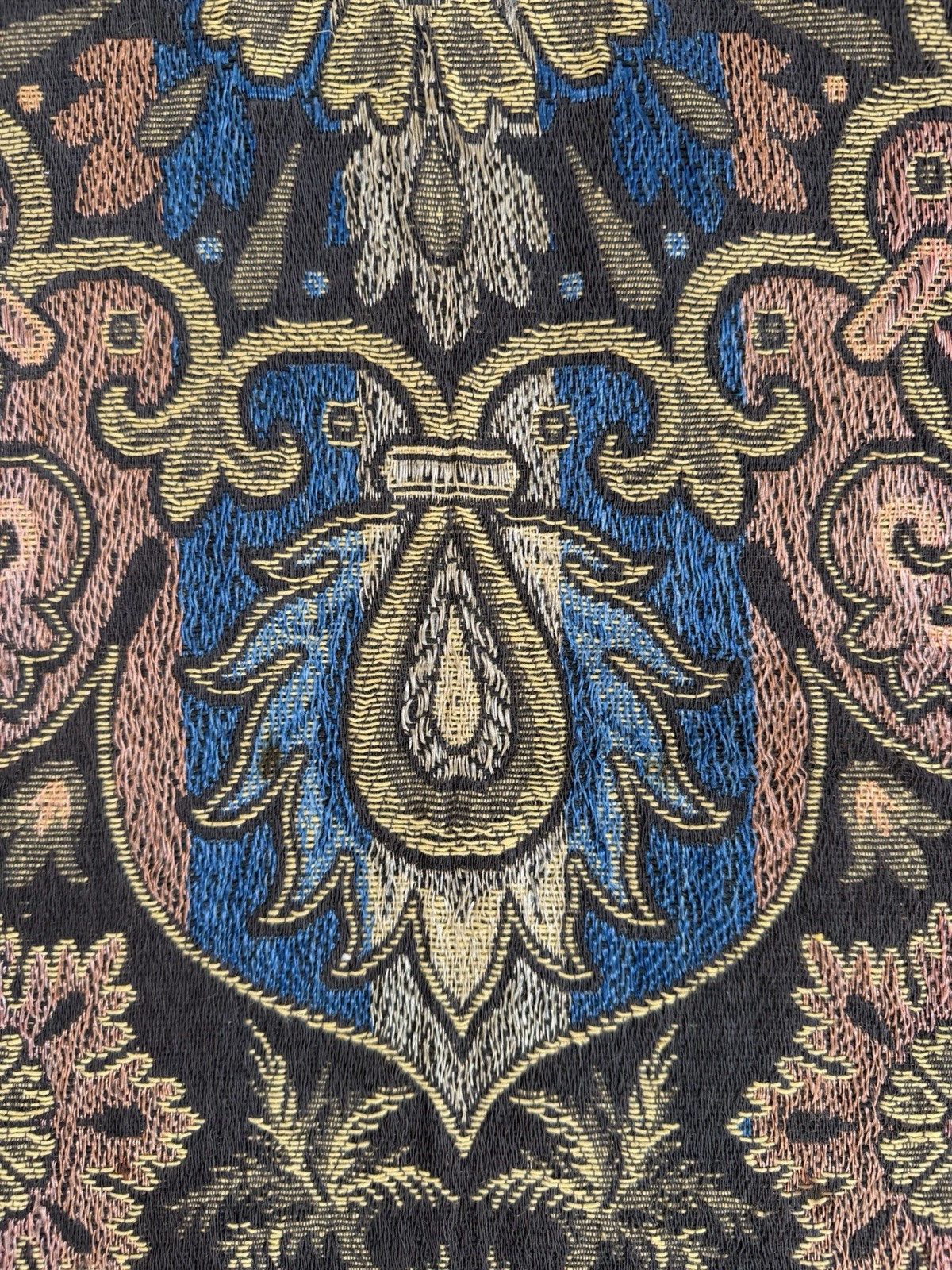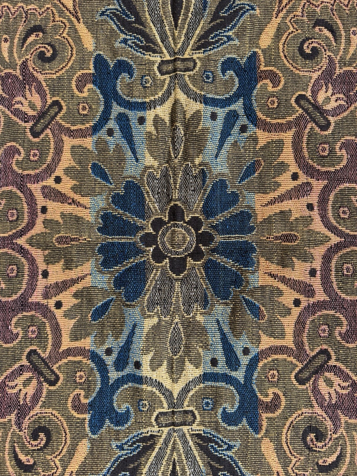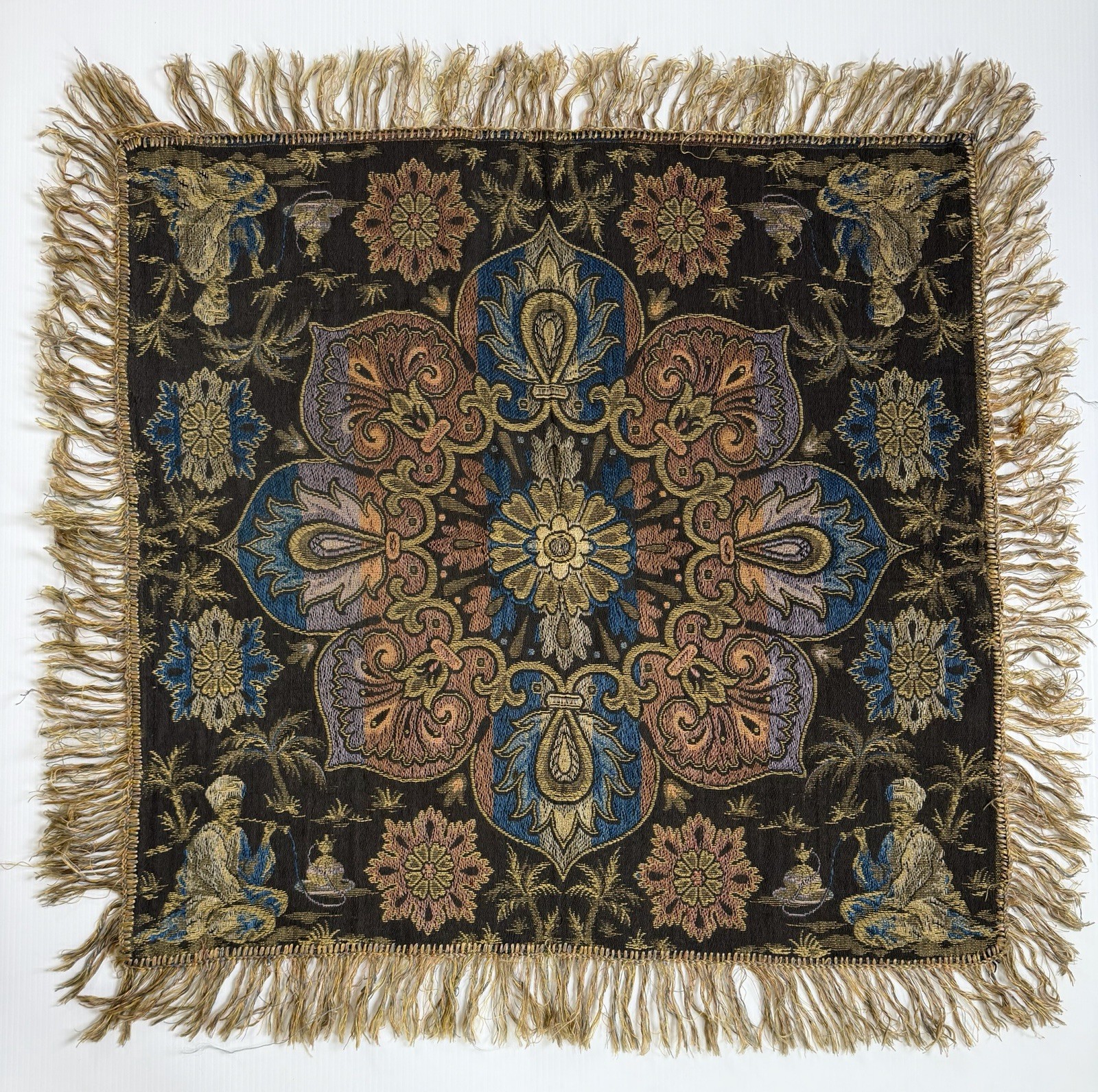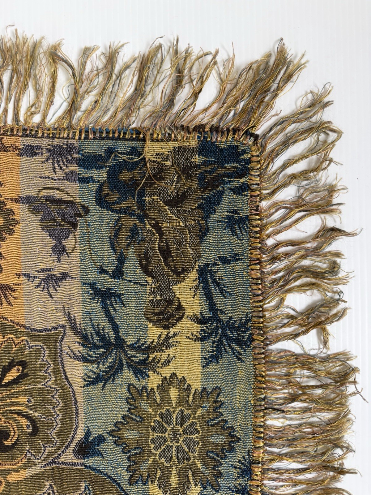 Vintage Eastern Style Woven Fringe Shawl Piano Scarf, Man Smoking Pipe, Italy