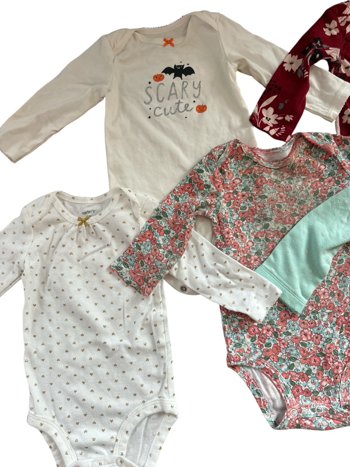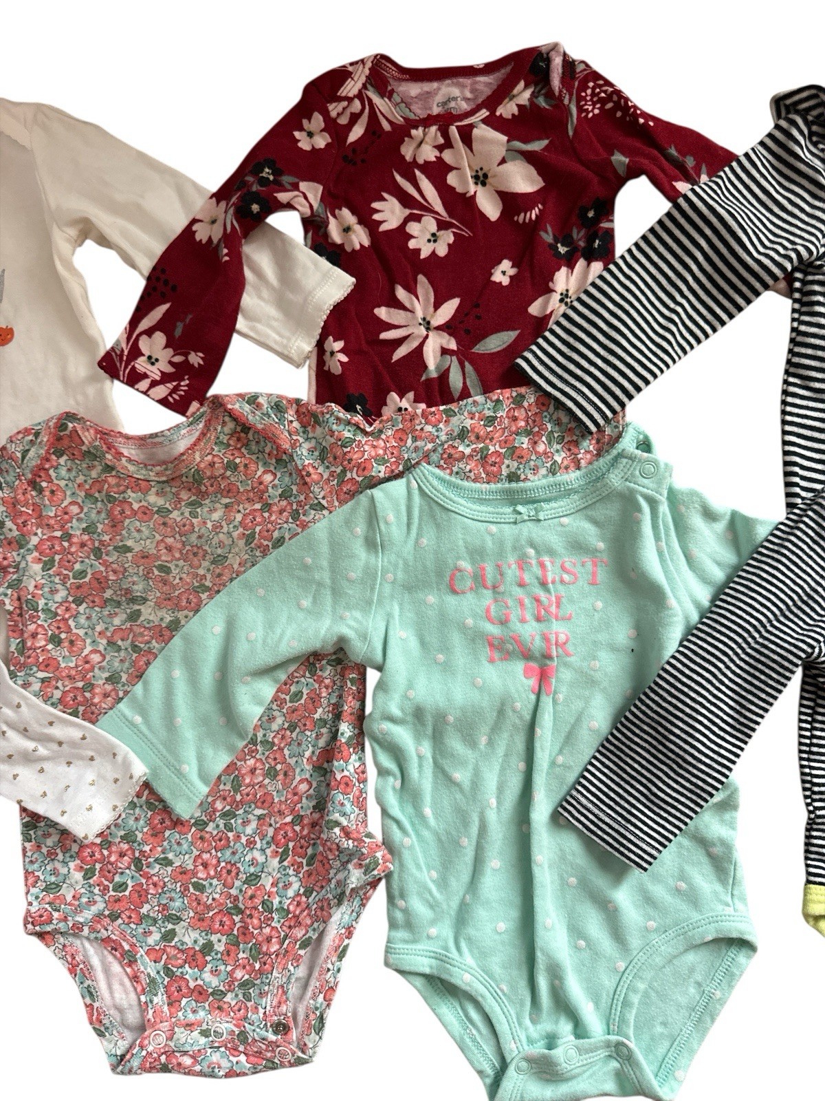 Lot of 7 Multi Brands One Piece Long Sleeve Bodysuit Girls Size 9 months