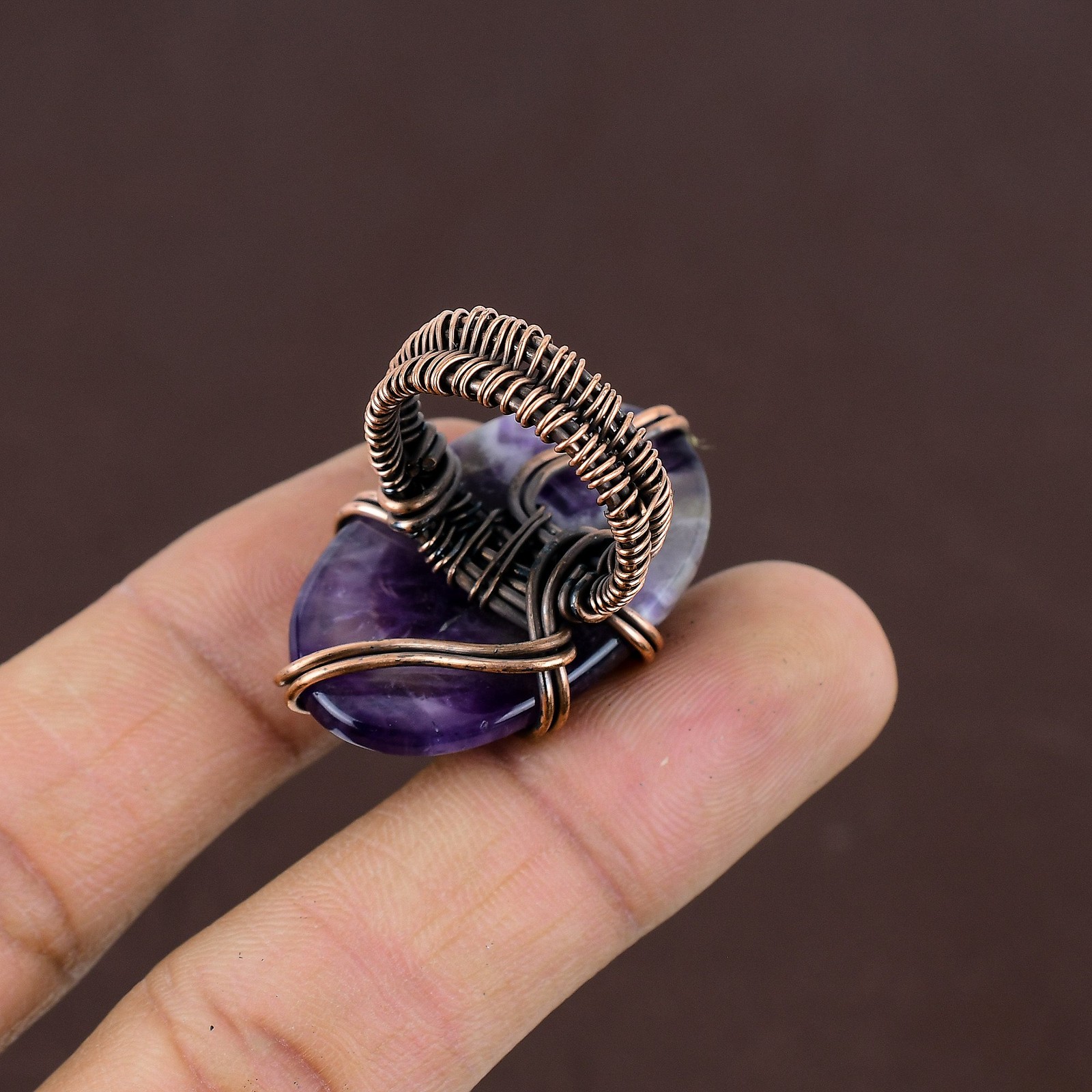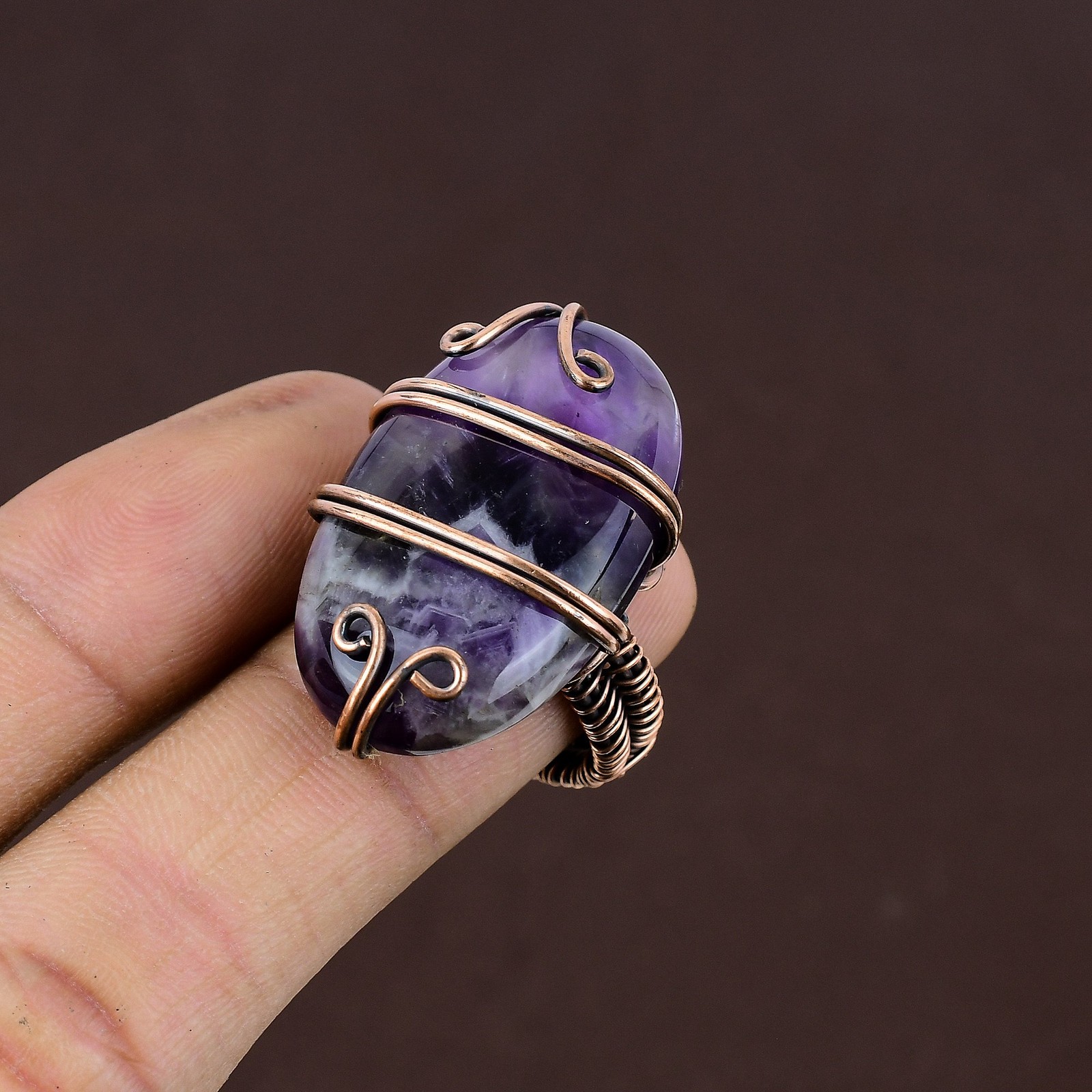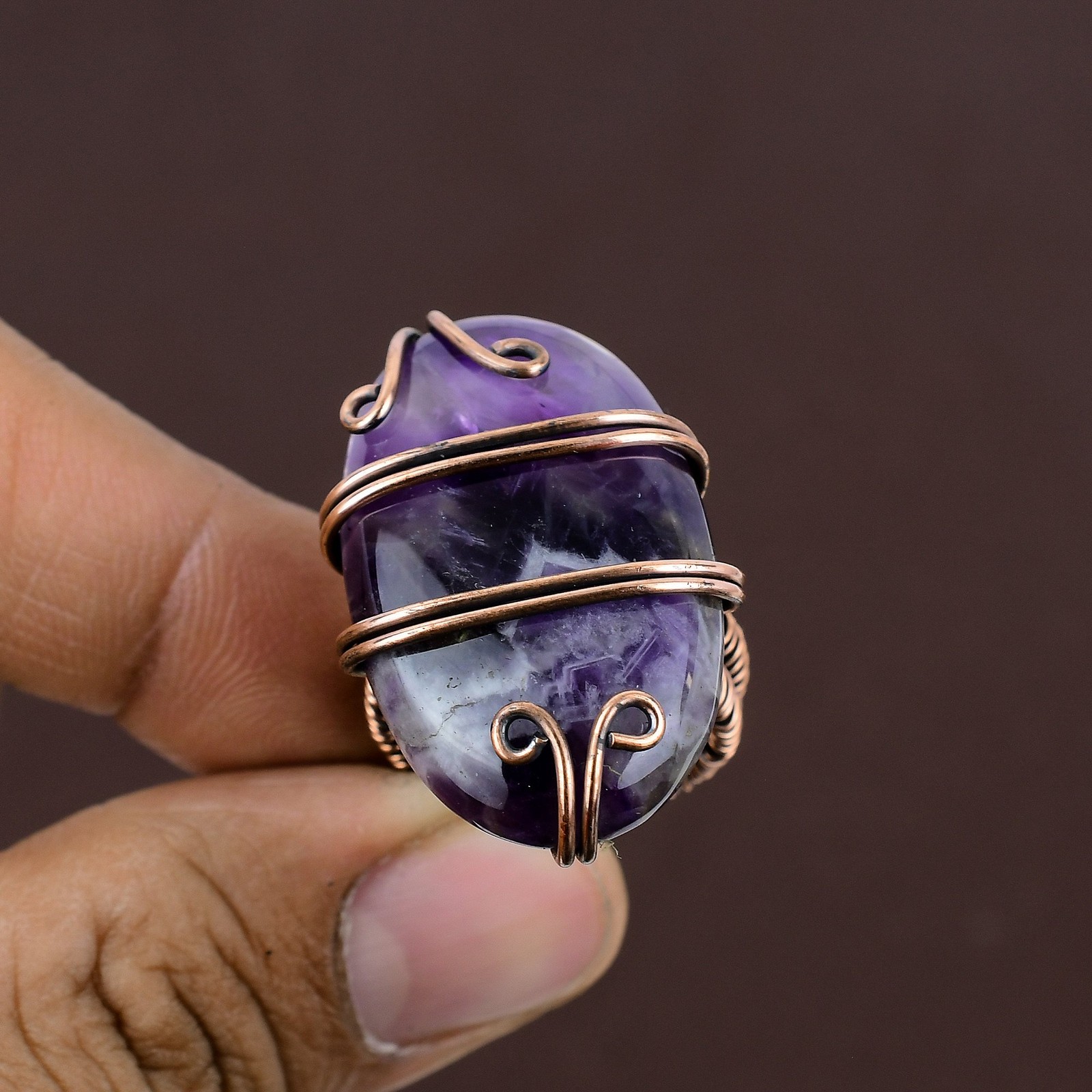 Sage Amethyst Gemstone Copper Wire Wrap Jewelry Ring Size 6.5 Gift for Her D287