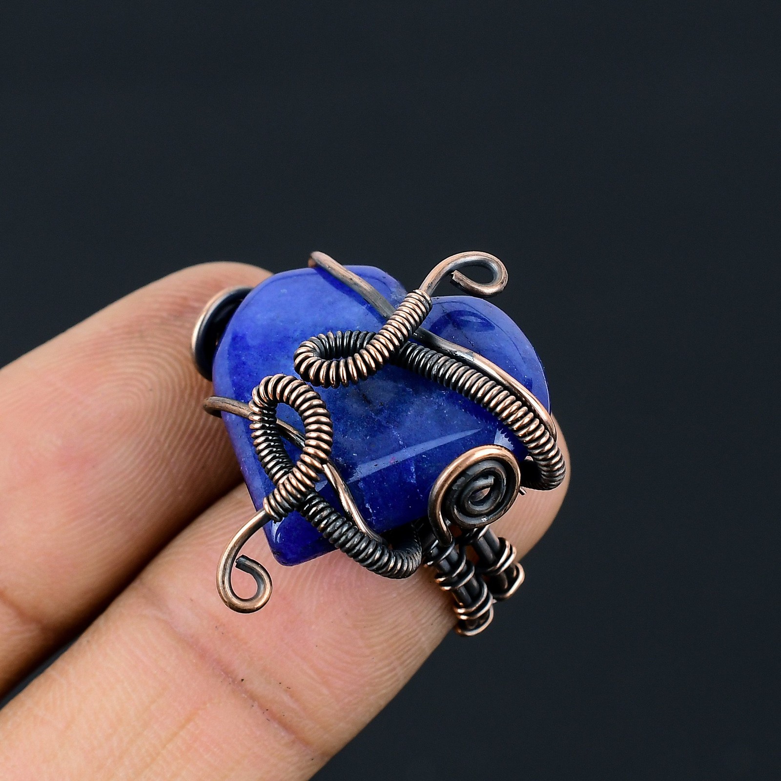 как выглядит Lapis Lazuli Gemstone Copper Wire Wrap Jewelry Ring Size 4 Gift for Her W667 фото