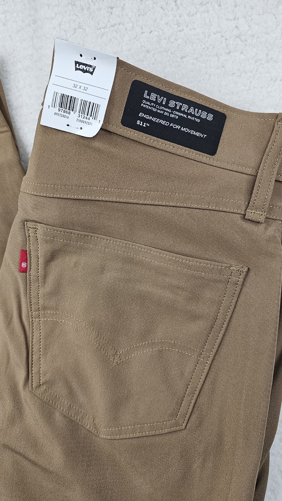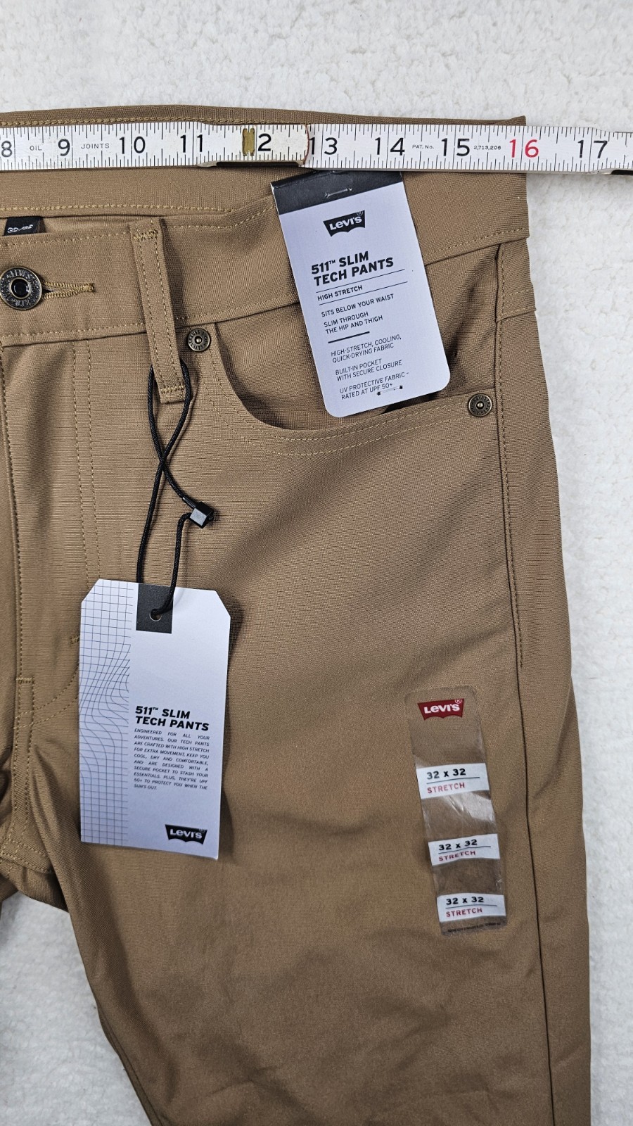 как выглядит Levis 511 Slim Tech Pants High Stretch Quick Dry UV Protection Brown Tan 32x32 фото