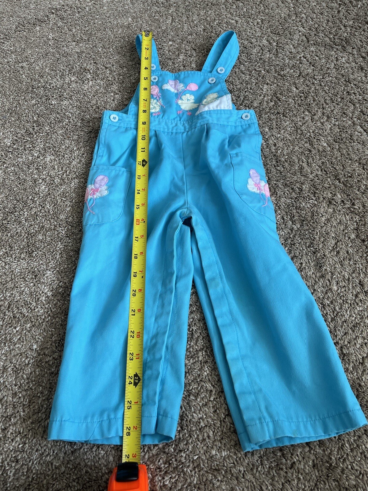 CUTIES by JUDY VTG 90s EASTER Baby Chicks OVERALLS TODDLER GIRL RETRO BALLOONS