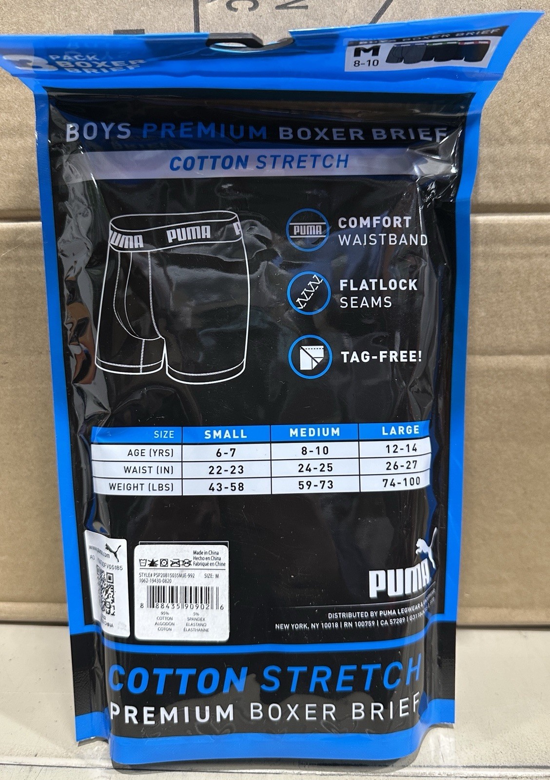 Puma 3 Pack Boxer Briefs Cotton Stretch Premium Underwear Size Medium 8-10