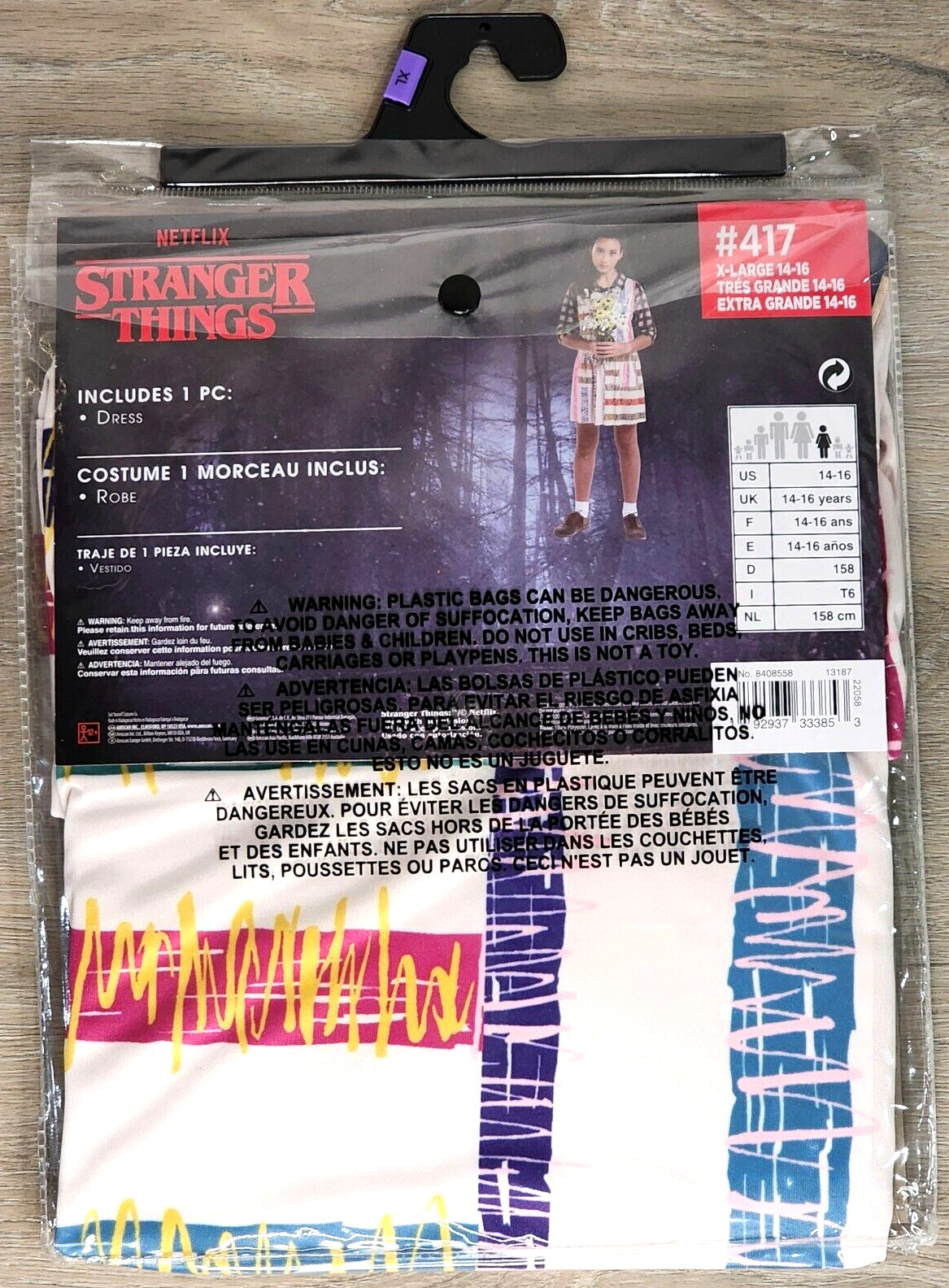 Stranger Things ELEVEN Child Dress Costume 417 Girls XLarge 14-16 Halloween New