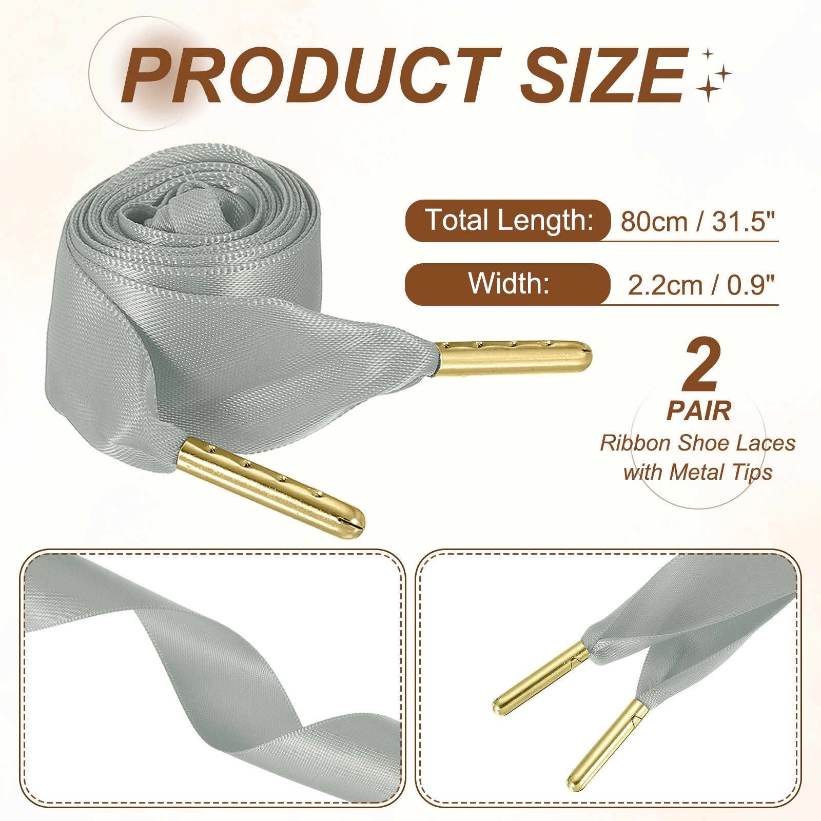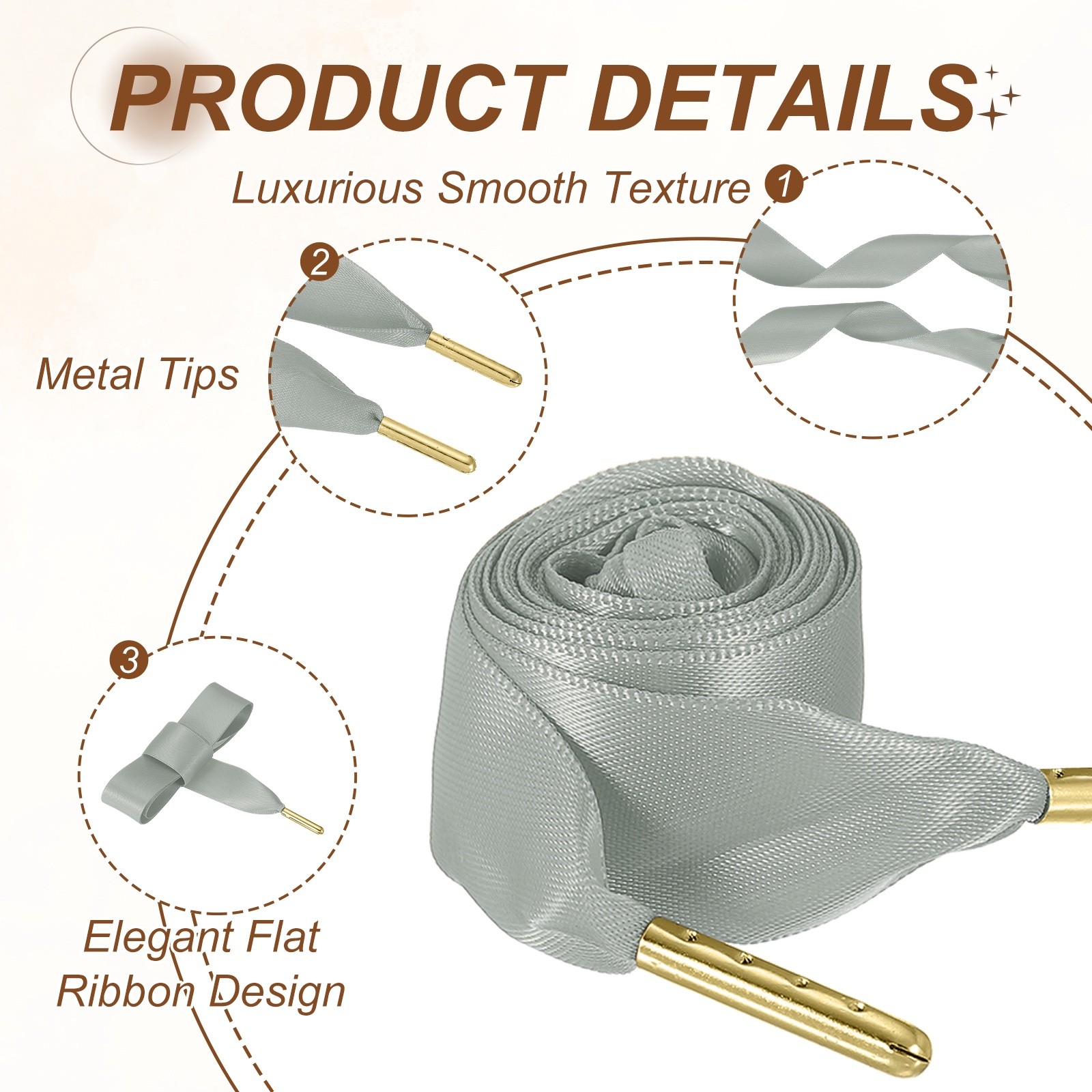 2Pair Satin Ribbon Shoelaces, 2cm Ribbon Shoe Laces 80cm Long Light Gray