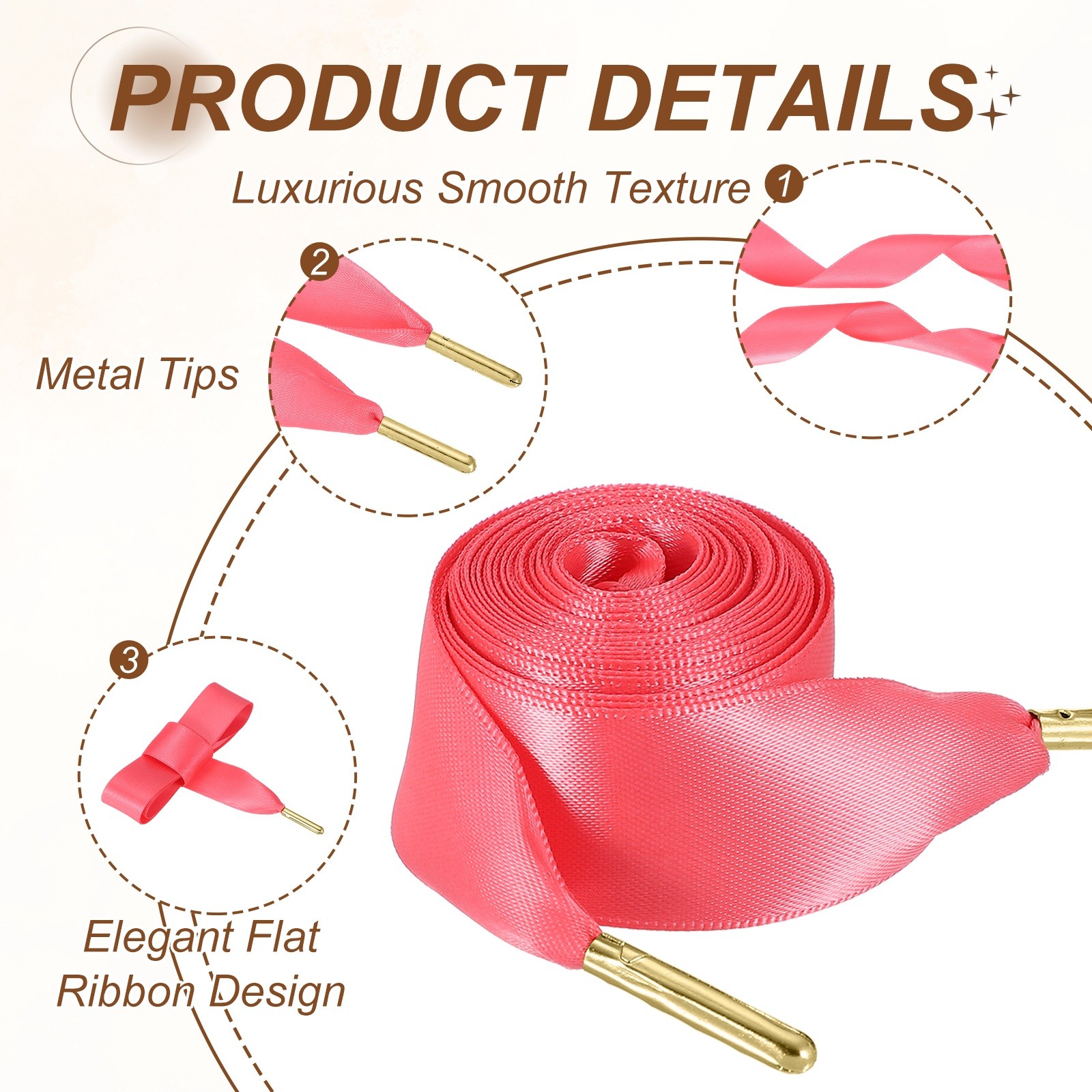 2Pair Satin Ribbon Shoelaces, 2cm Ribbon Shoe Laces 150cm Long Deep Pink