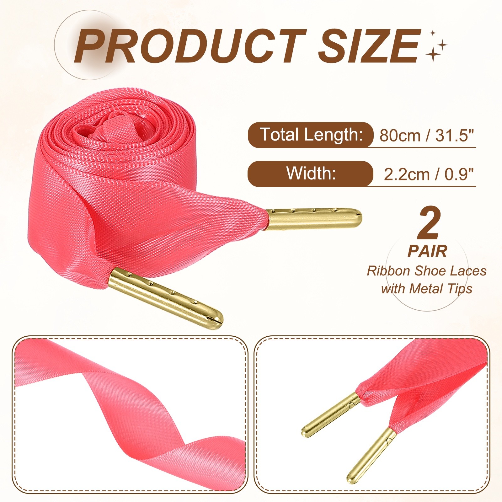 2Pair Satin Ribbon Shoelaces, 2cm Ribbon Shoe Laces 80cm Long Deep Pink