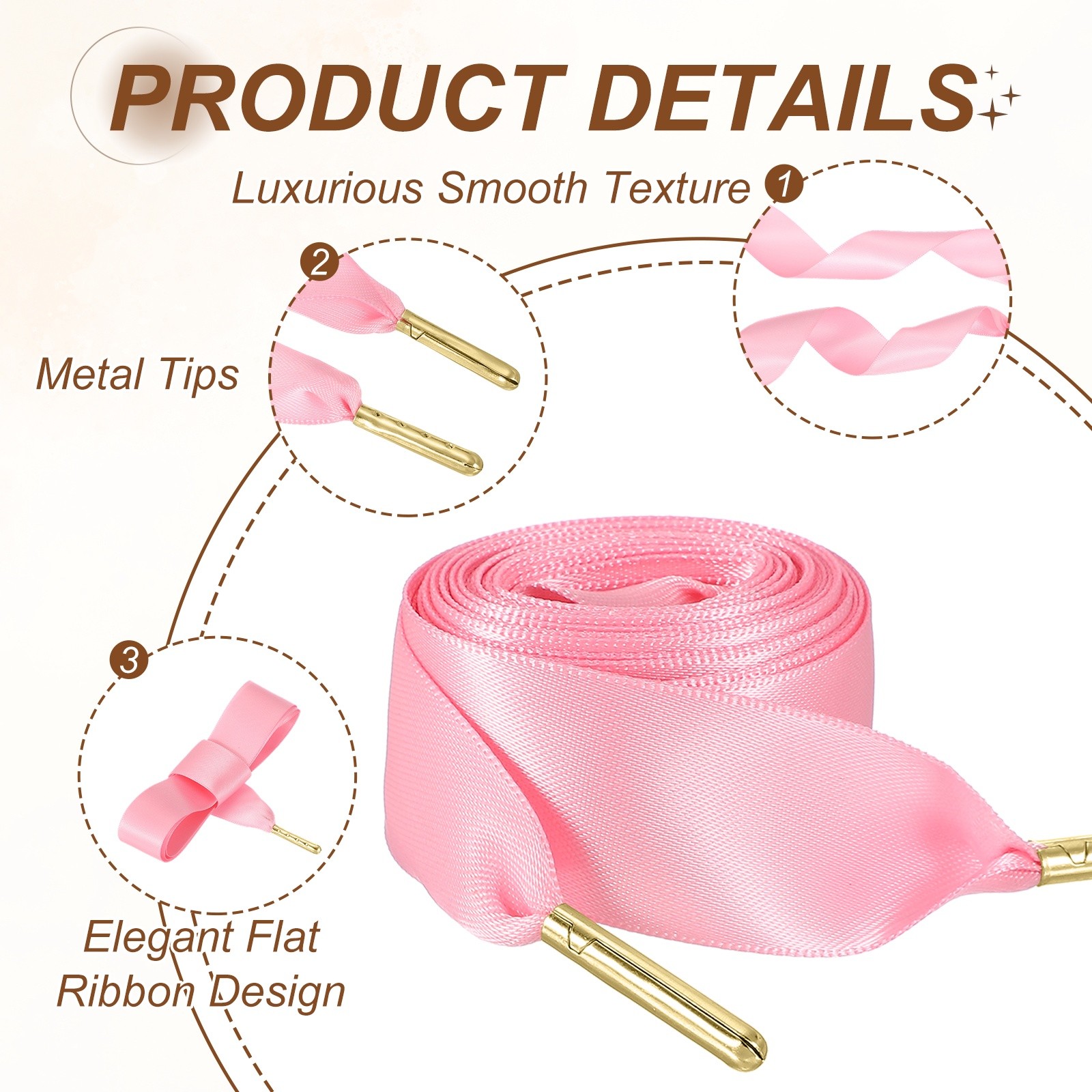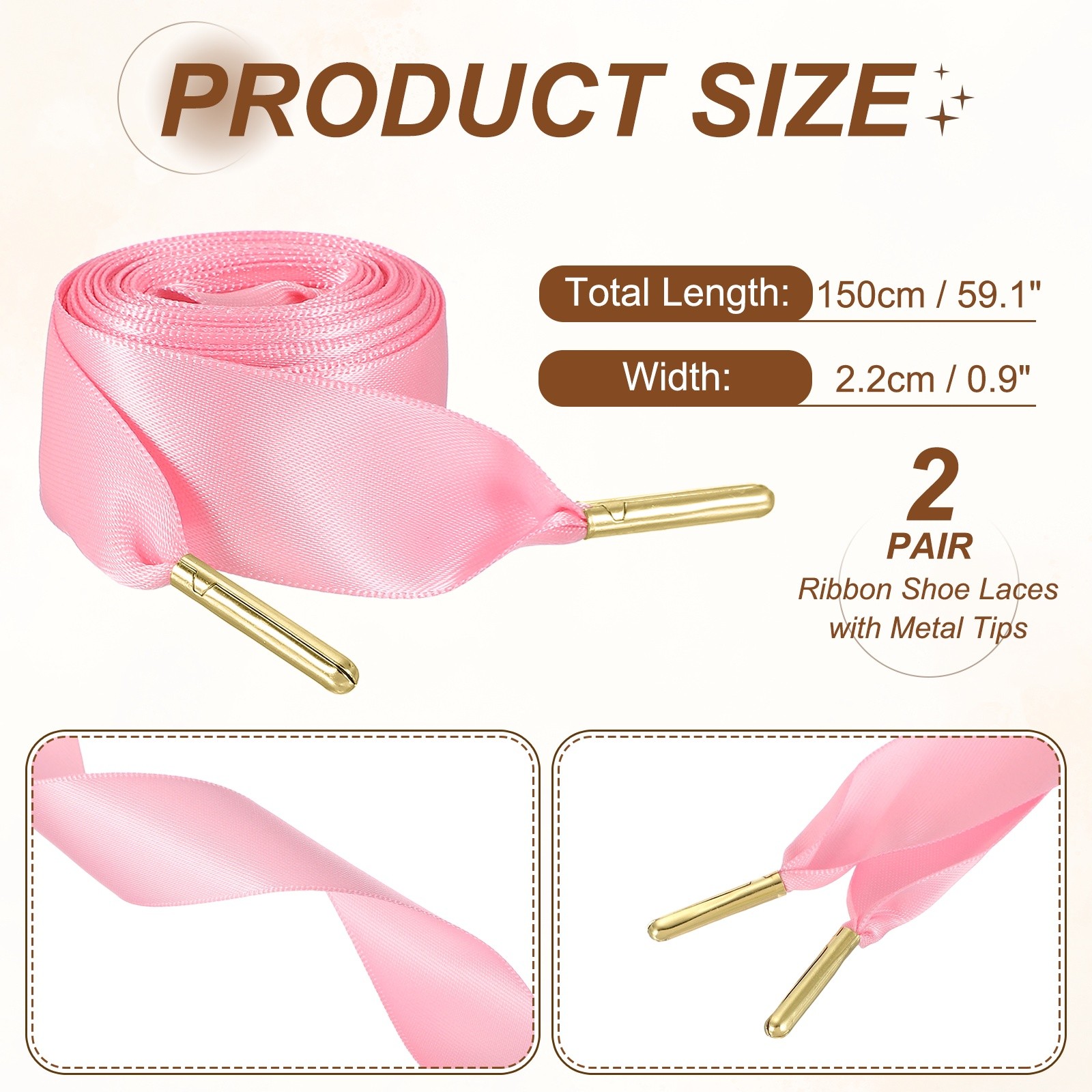 2Pair Satin Ribbon Shoelaces, 2cm Ribbon Shoe Laces 150cm Long Light Pink