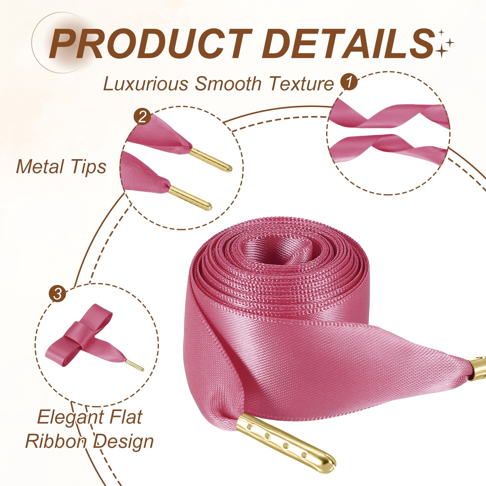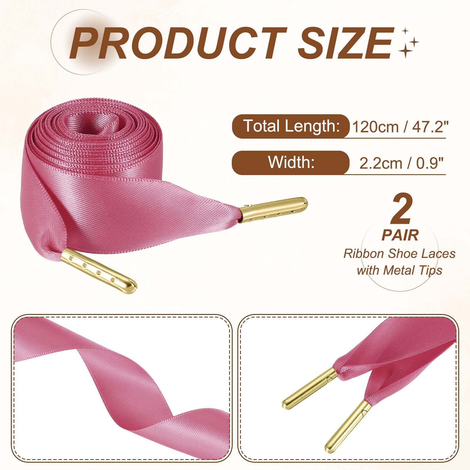 2Pair Satin Ribbon Shoelaces, 2cm Ribbon Shoe Laces 120cm Long Fuchsia