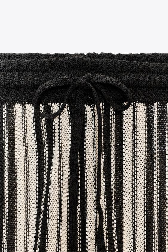 ZARA NEW WOMAN HIGH RISE ECRU BLACK STRIPED LINEN CUFFED HEM BALLOON PANTS sz M