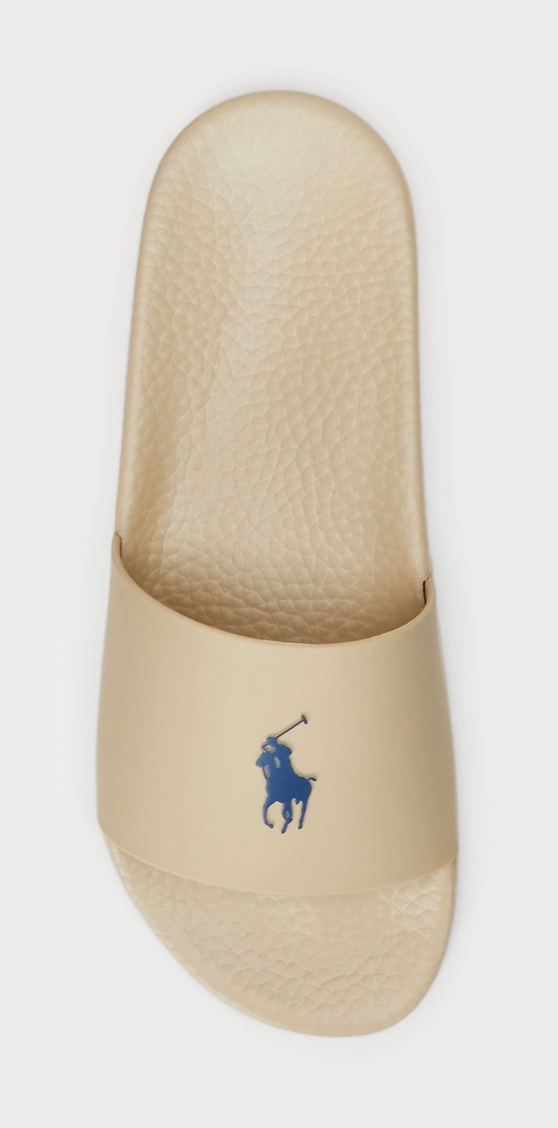 как выглядит Polo Ralph Lauren Khaki Beige BIG PONY Slide Sandals - size 8-13 фото