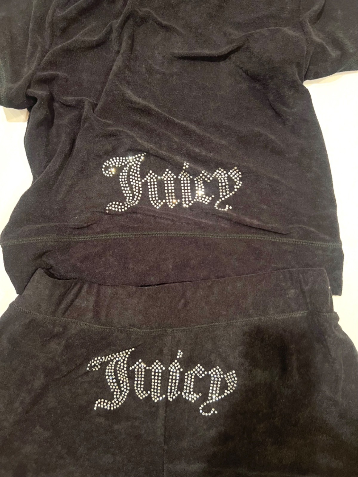как выглядит Juicy Couture Bling Terry Short Sleeve Hoodie Shorts Set Liquorice Black L NWT фото