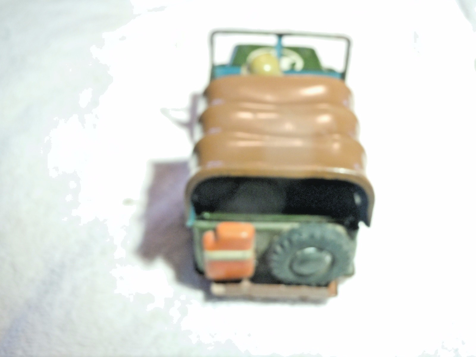 как выглядит 6-1/2 " GREEN JAPANESE TIN ARMY JEEP WITH DRIVER FIGURE, METAL CARGO COVER фото