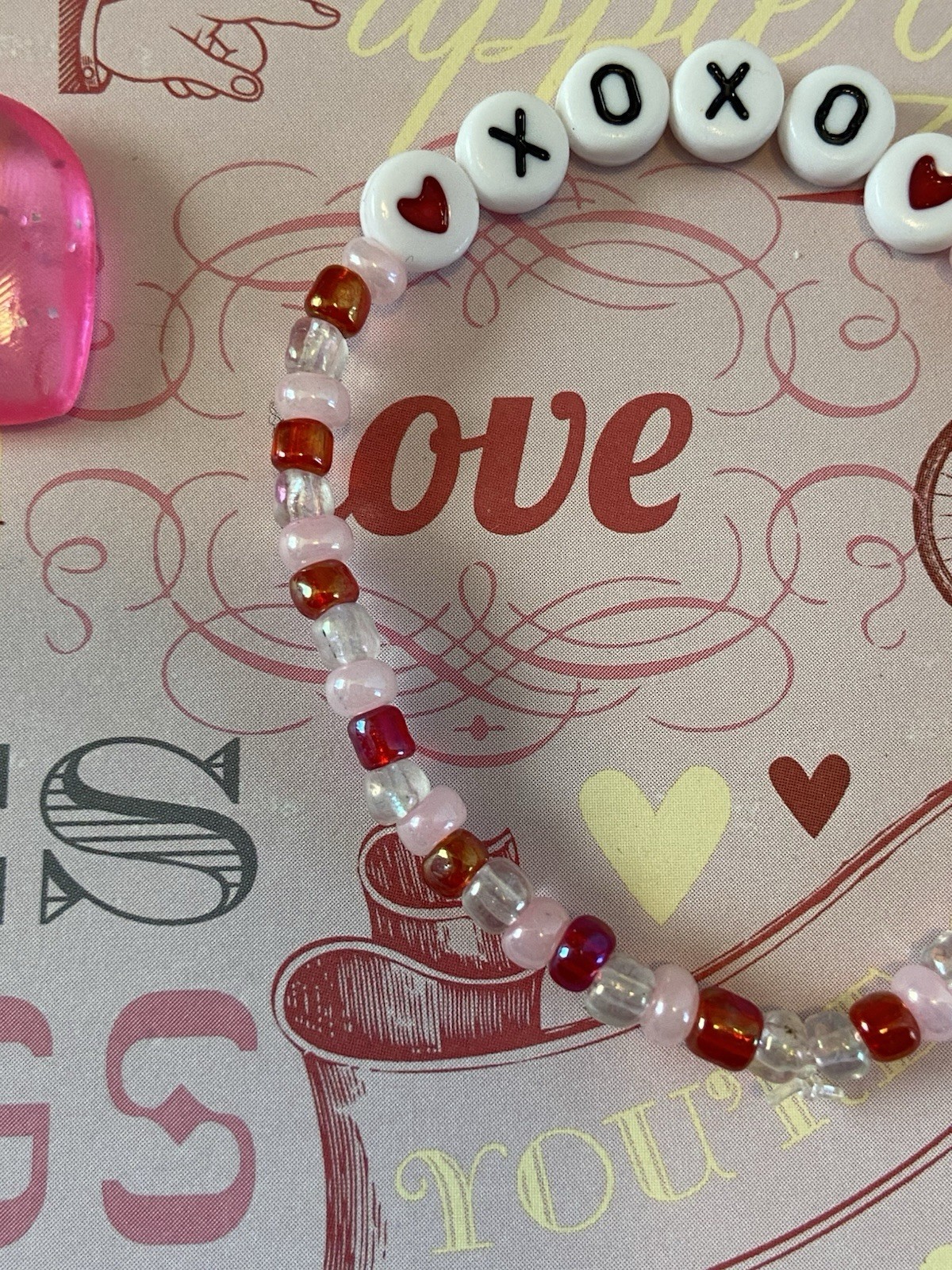 Valentine Beaded Bracelet XOXO Girls Kids Jewelry Handmade Valentine Gift