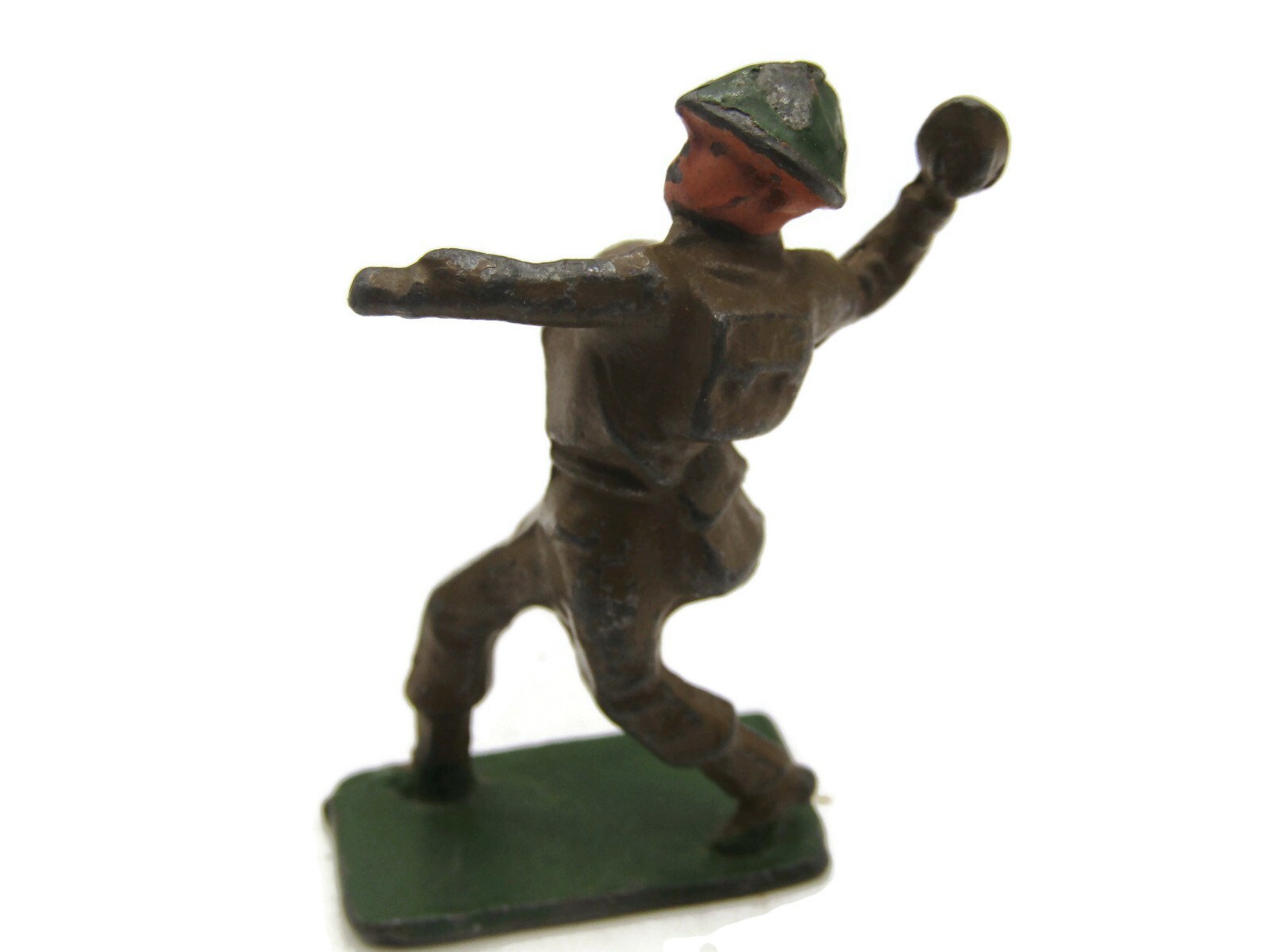 Vintage Metal Soldier Throwing Grenade Design