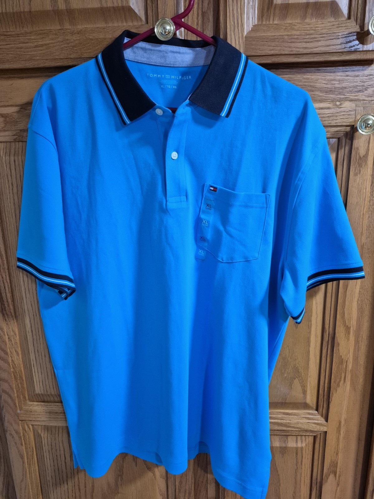 Tommy Hilfiger Polo Mens XL Cotton, Brite Blue/Black Collar Short Sleeve, NWT