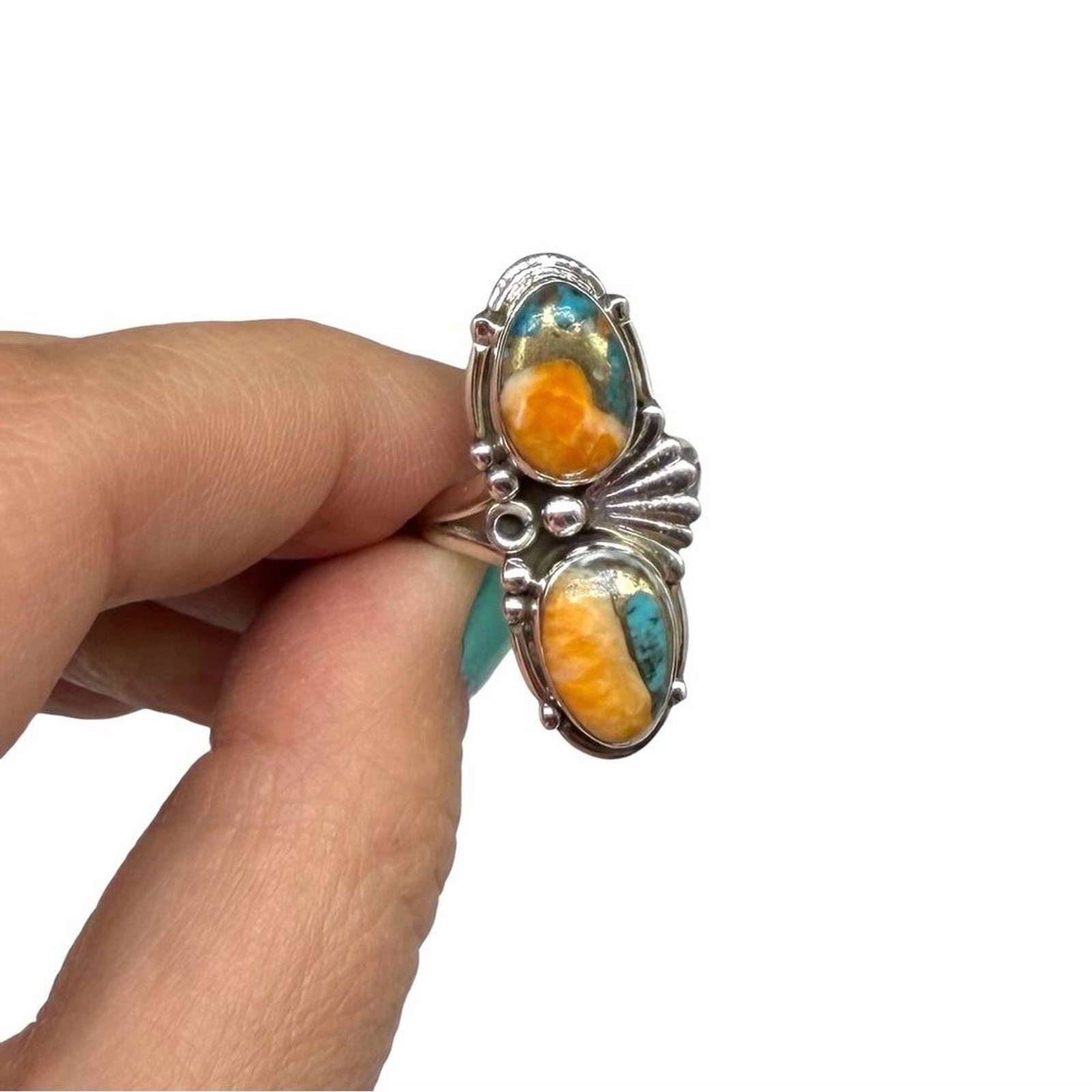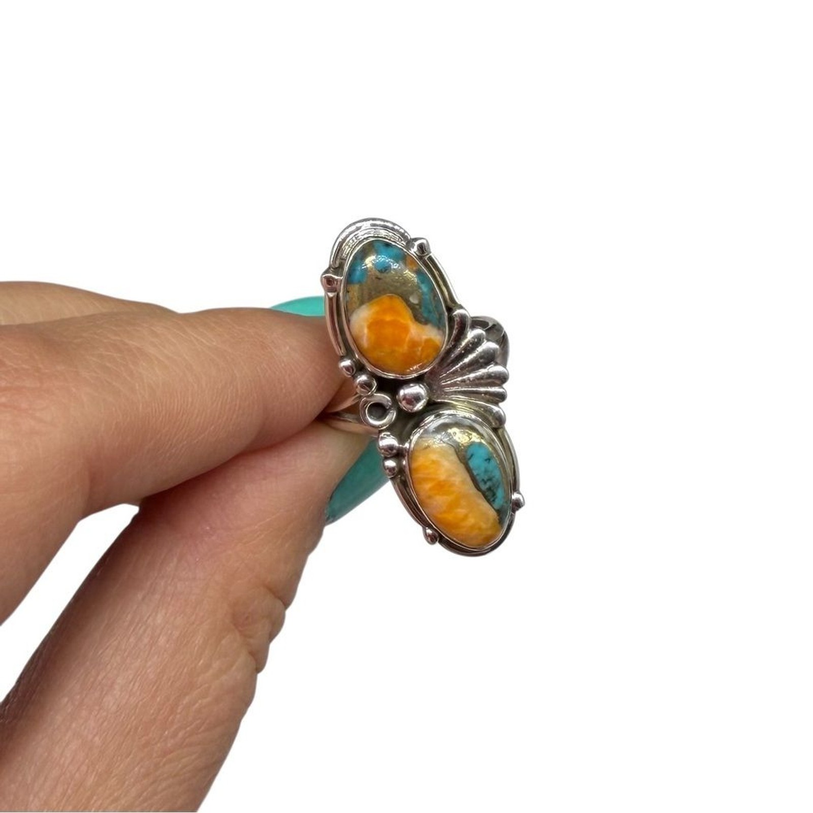как выглядит Spiny Oyster Kingman Turquoise Ring Size 6 Solid 925 Sterling Silver Western фото