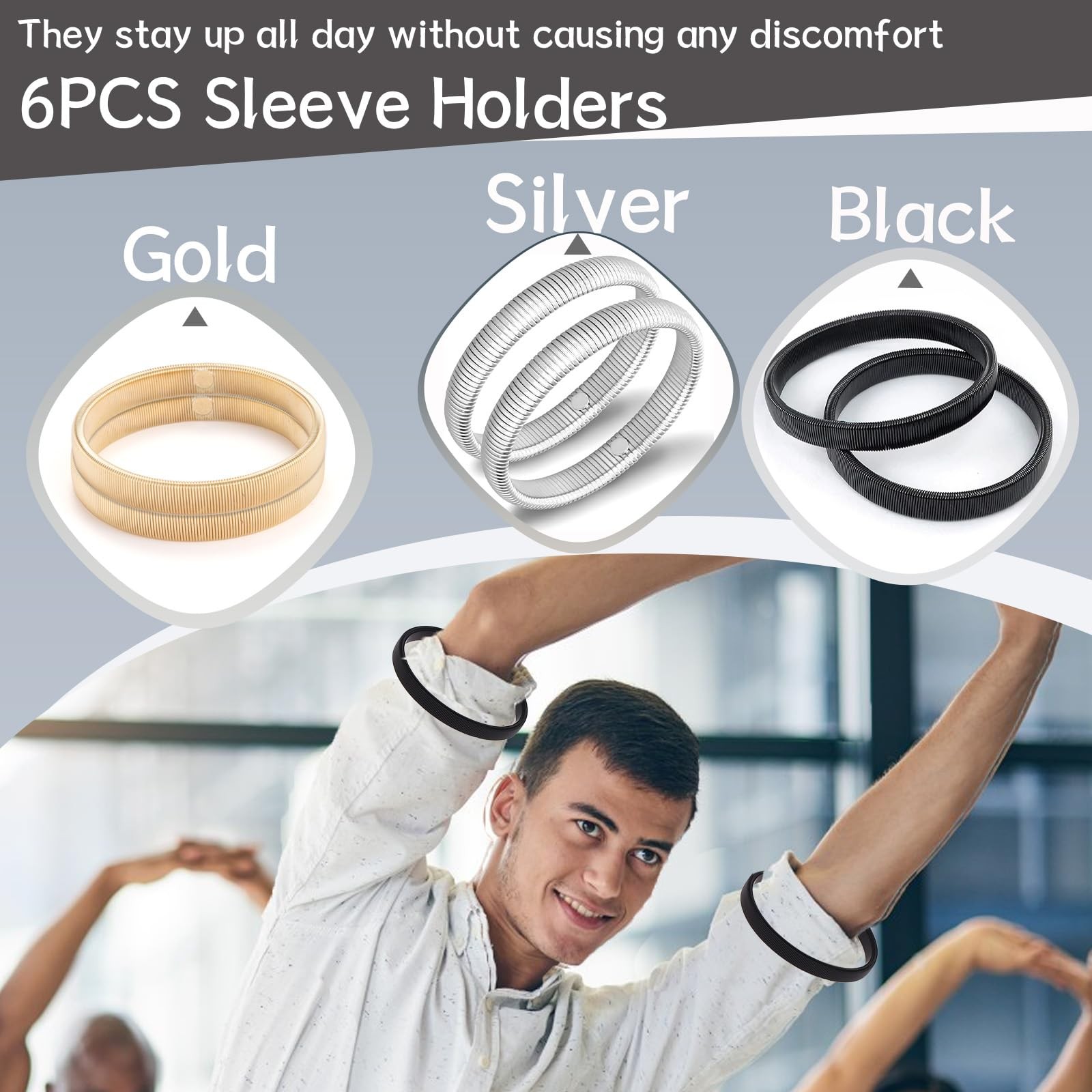6-Pack Sleeve Holders for Women Men, Stretchy Metal Sleeve Garters, Anti-Slip