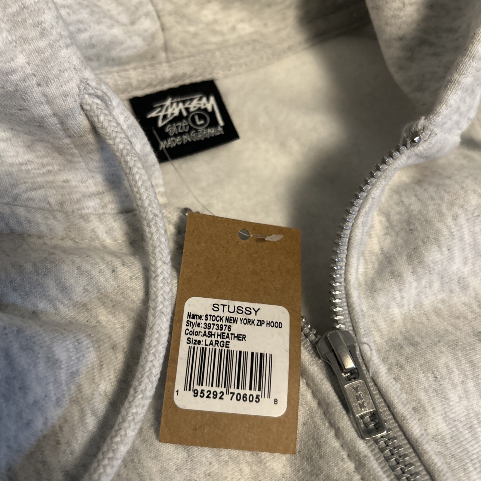 Stussy New York Chapter Zip Jacket Hoodie Gray Fog - Size L NEW