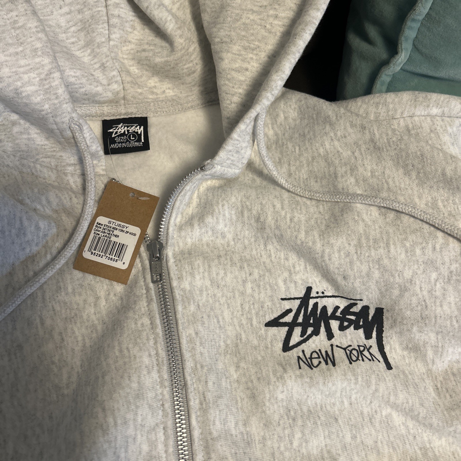 как выглядит Stussy New York Chapter Zip Jacket Hoodie Gray Fog - Size L NEW фото
